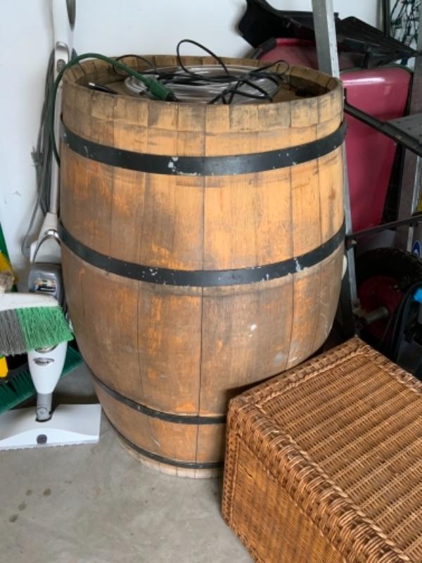 Wooden wine barrel.