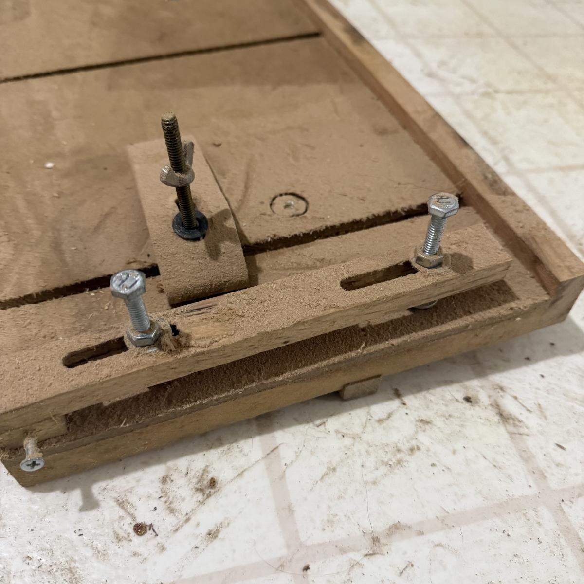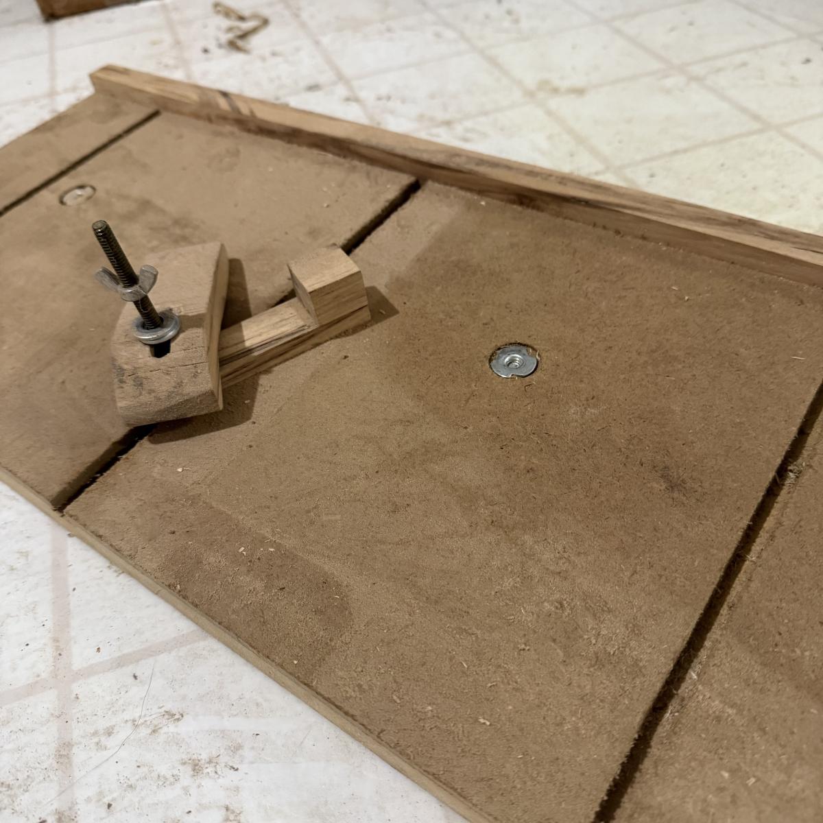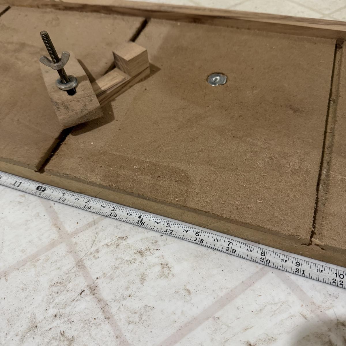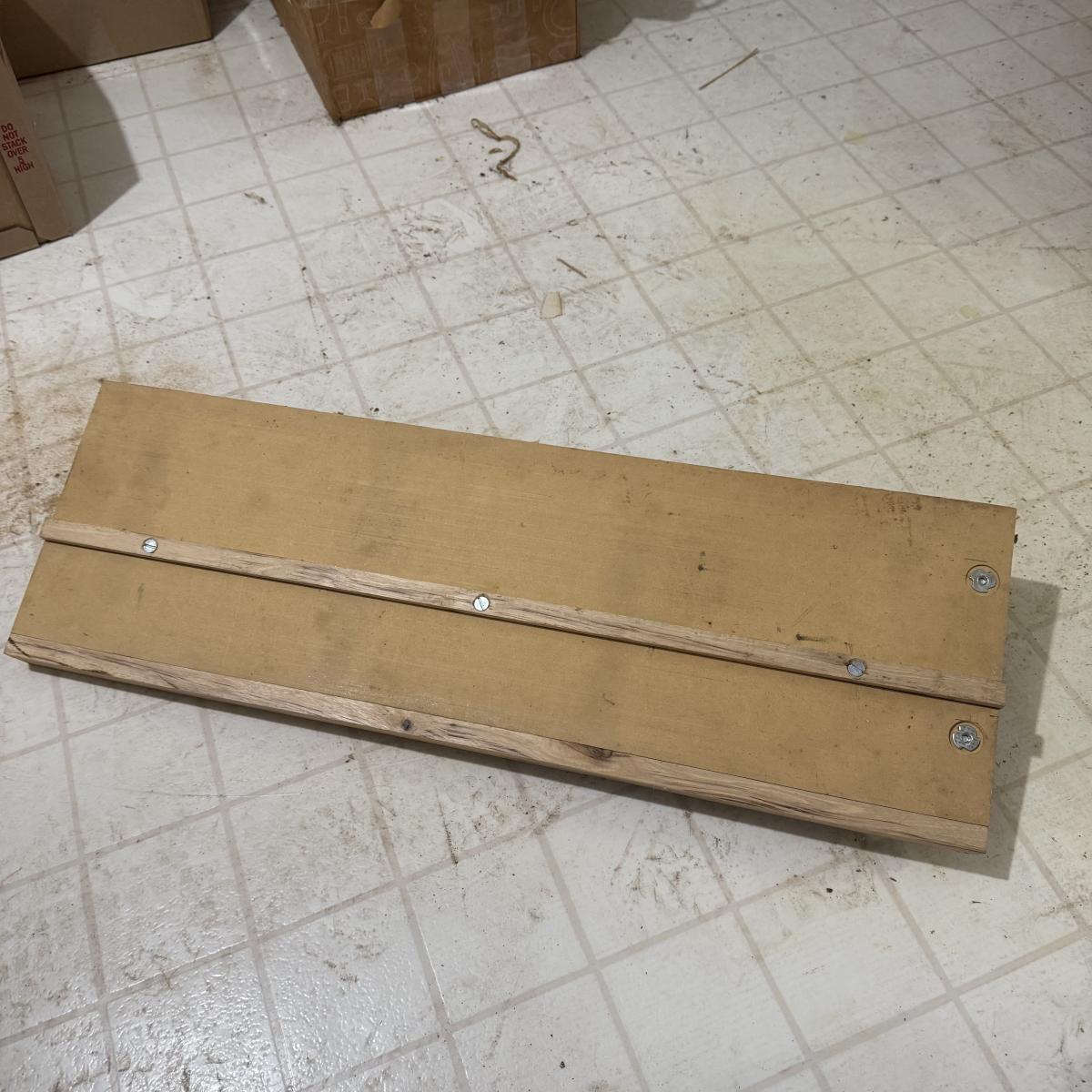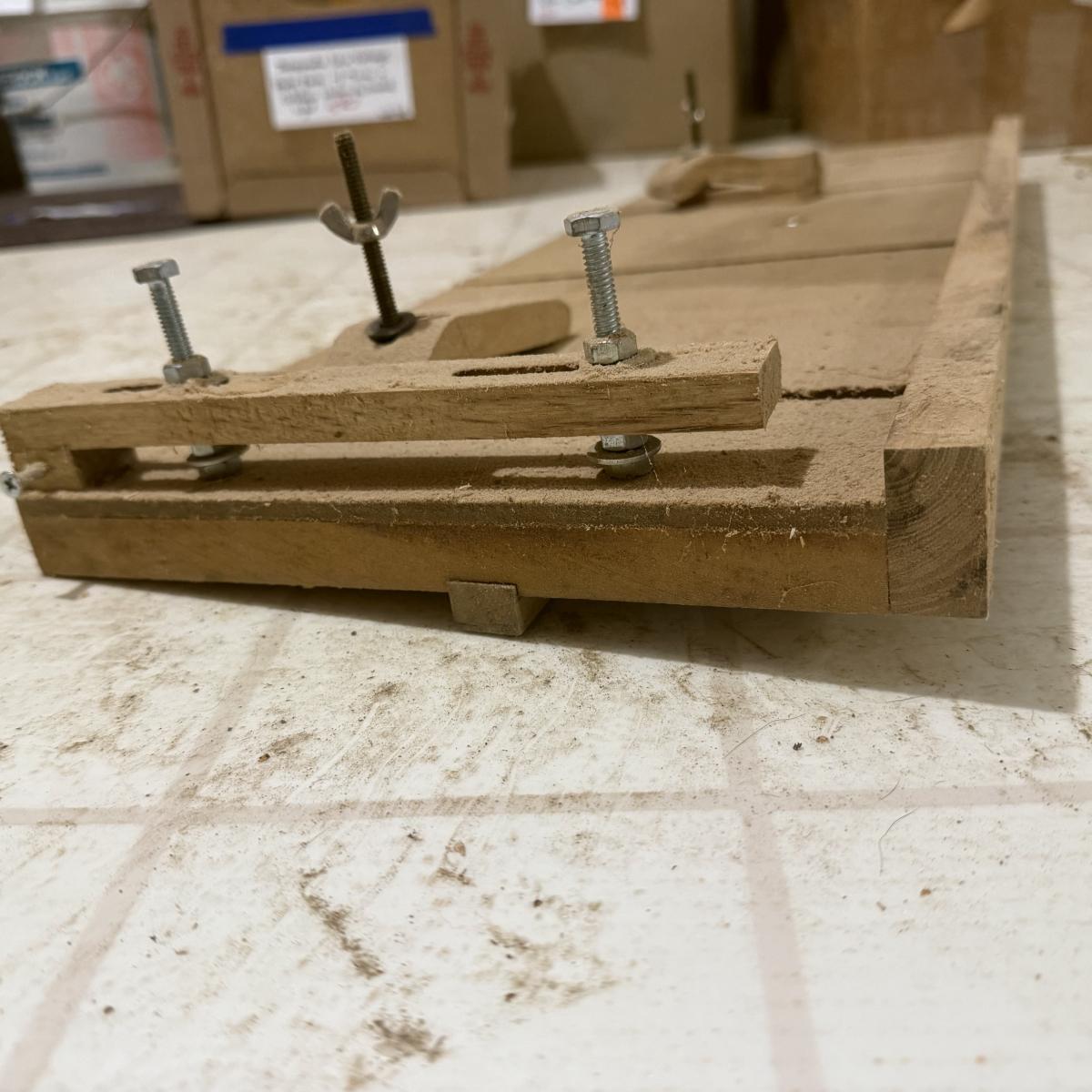 Wooden jig for woodworking. Measures 32” x 10.5” x 2.5”H. See photos for details.