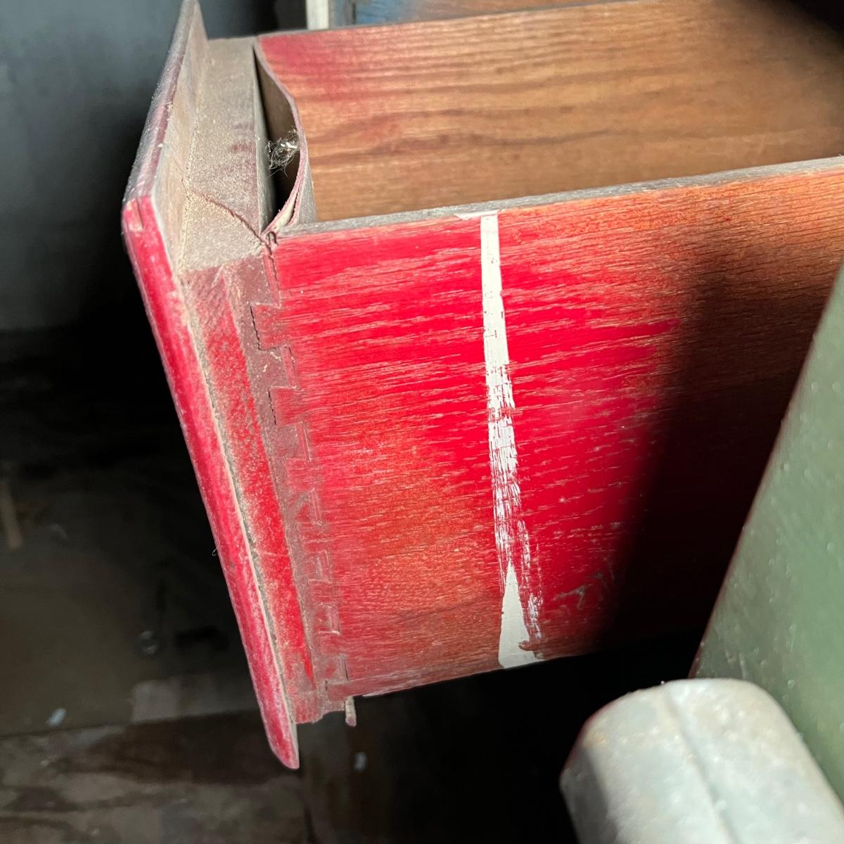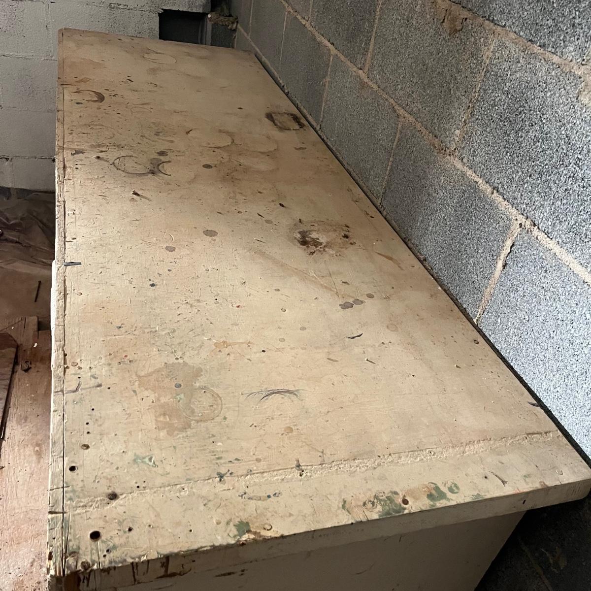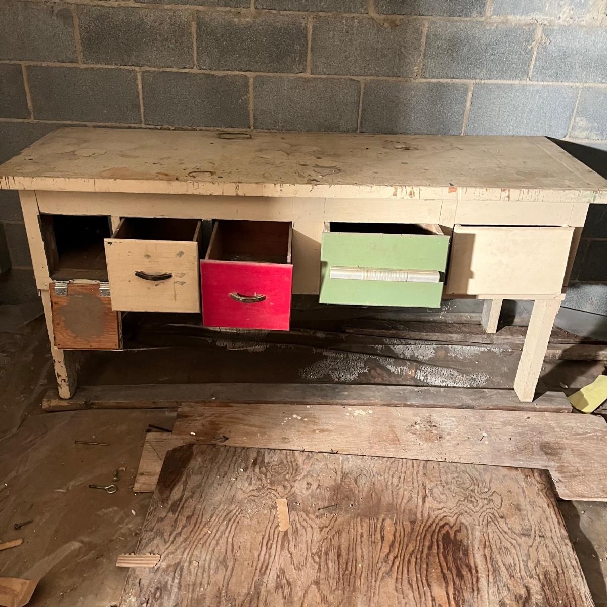 Lot includes a wooden workbench with colored drawers, some are dovetailed.. Bench measures 72” x 24.5” x 33.5”. Drawers currently don’t all fully close and paint work has blemishes, see images.
