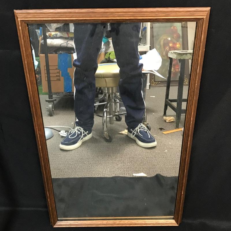 Including the frame this mirror measures 28“ x 17 1/2“. It is very heavy.