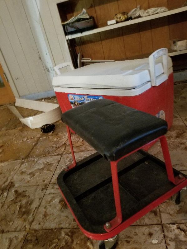 Wood/Glass Display Case, Cooler & Mechanic seat on wheels