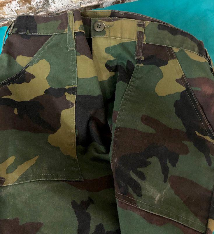 32 waist by 32 inseam on this pair of Woodland Camo pants...US surplus...