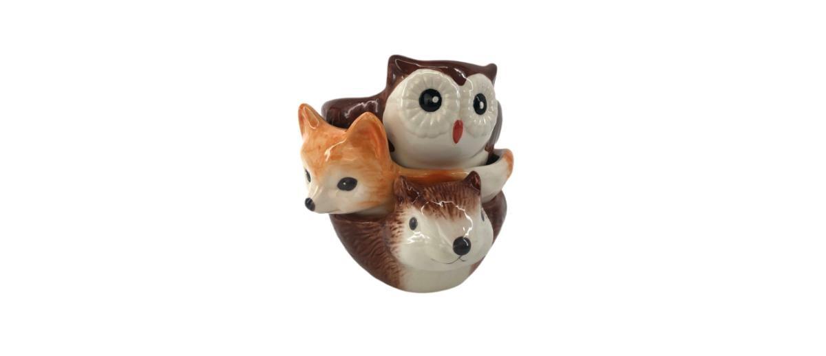 Set of three super adorable woodland critter animal bowls! Brand is Better Homes and Gardens, Heritage Collection. One squirrel, one fox, and one owl! Made of glazed earthenware. Dishwasher and microwave safe. Each measures approximately 5” inside bowl diameter and 2.5” in depth. All in great condition!