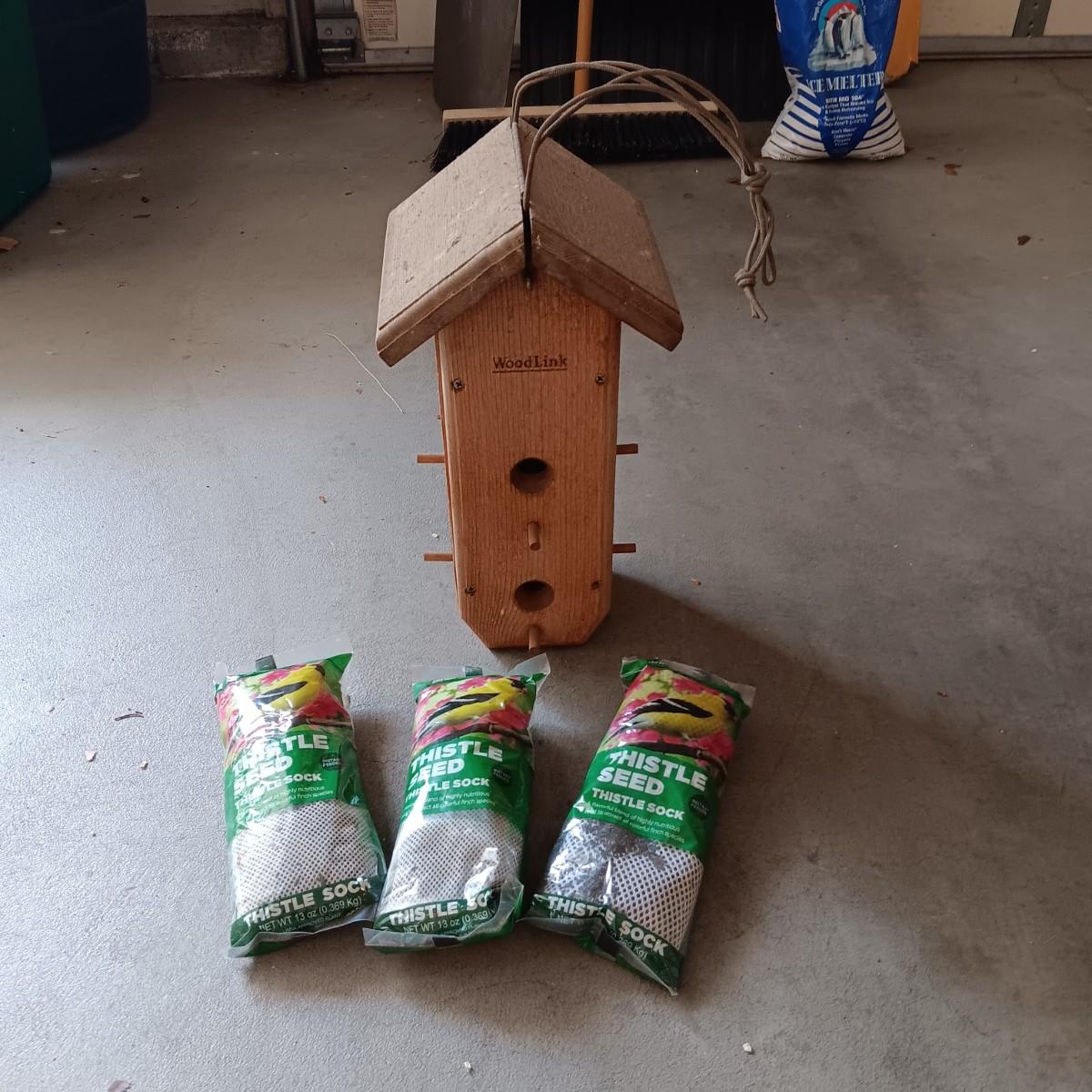 WOODLINK BIRD FEEDER AND THISTLE SEED SOCKS