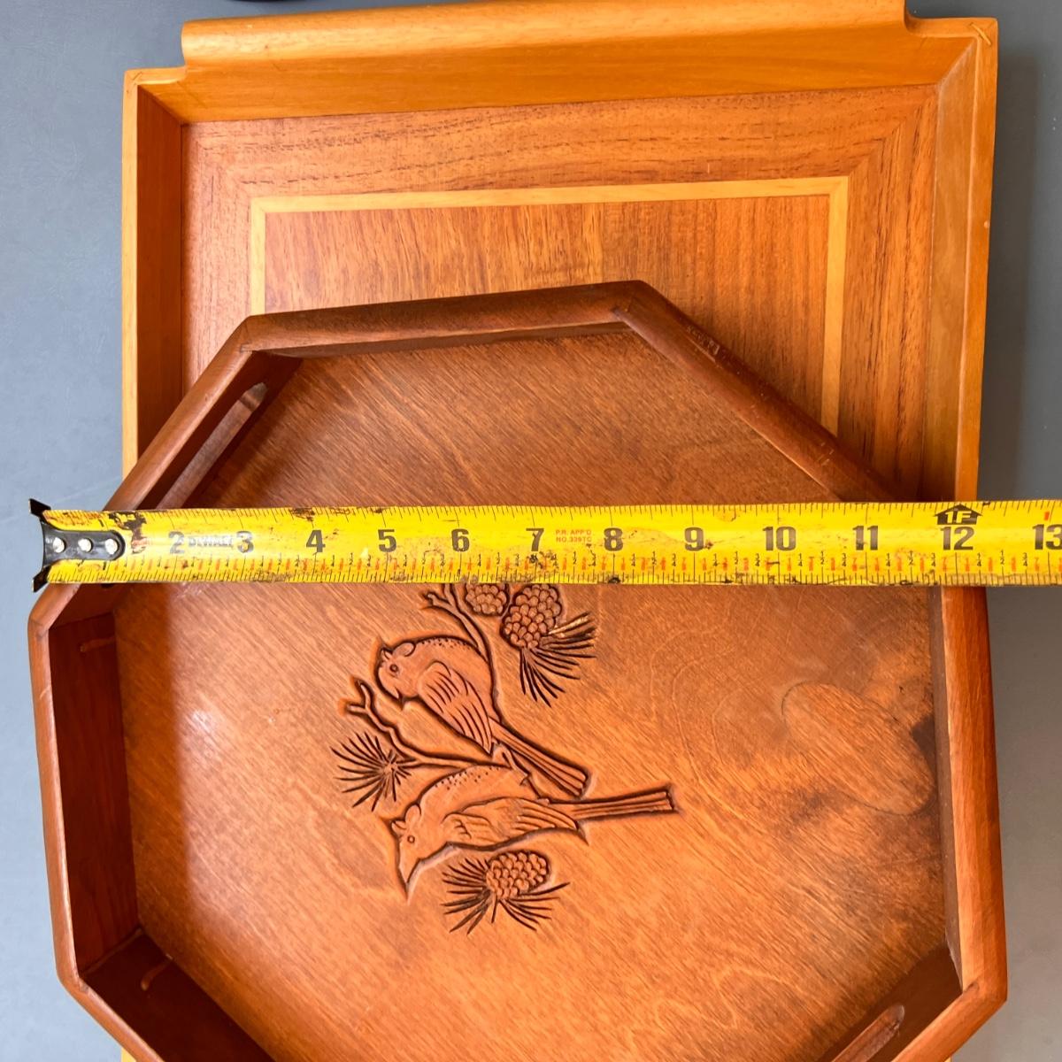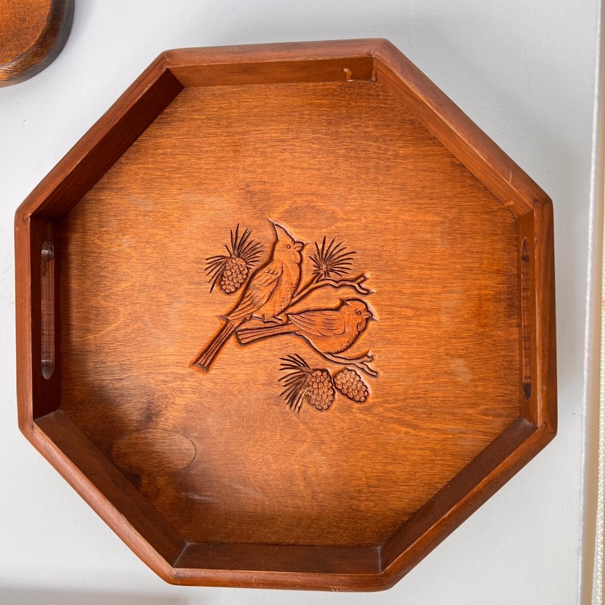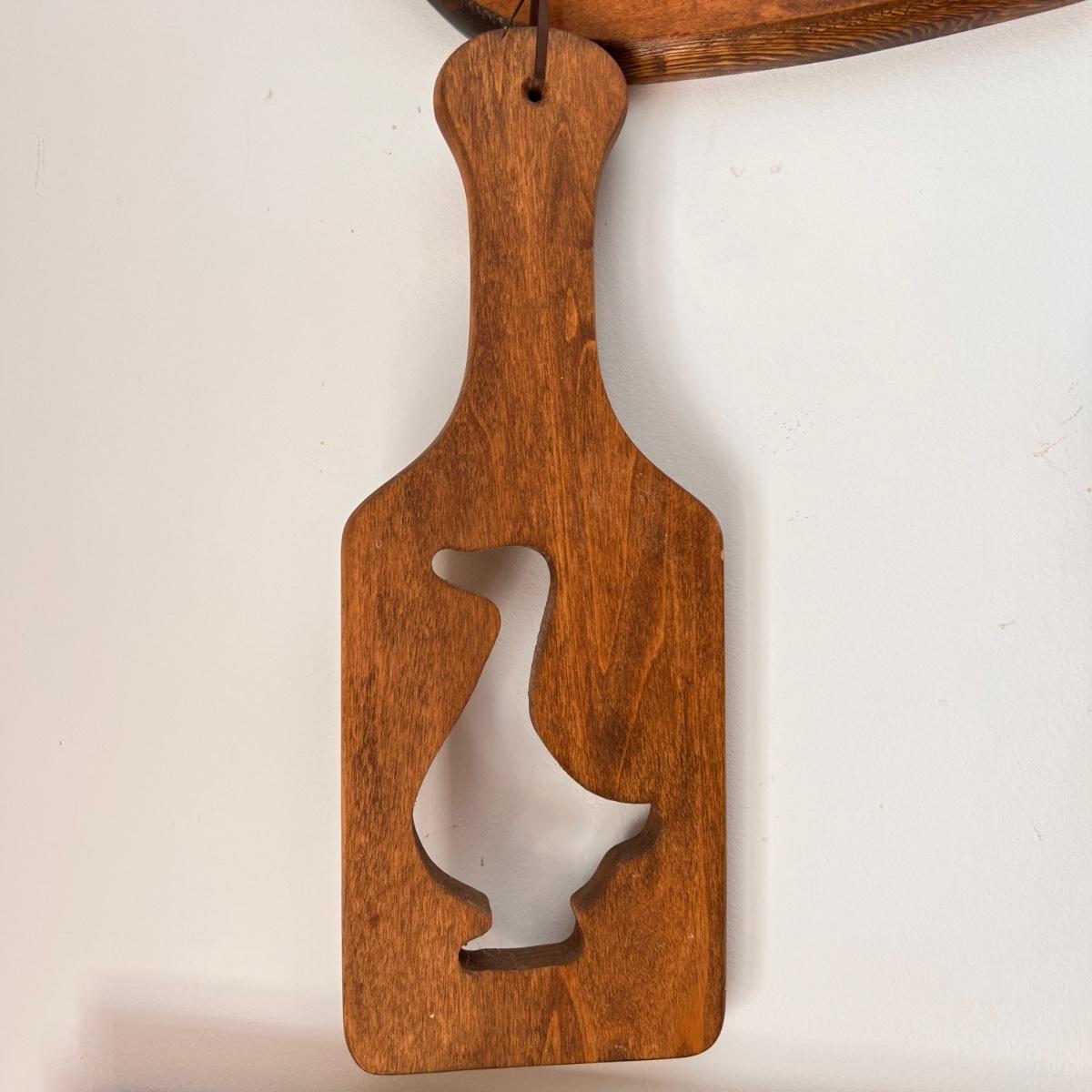 2 trays, one carved and one inlaid, duck wall mount hooks, Longaberger duck stencil-cut butter paddle