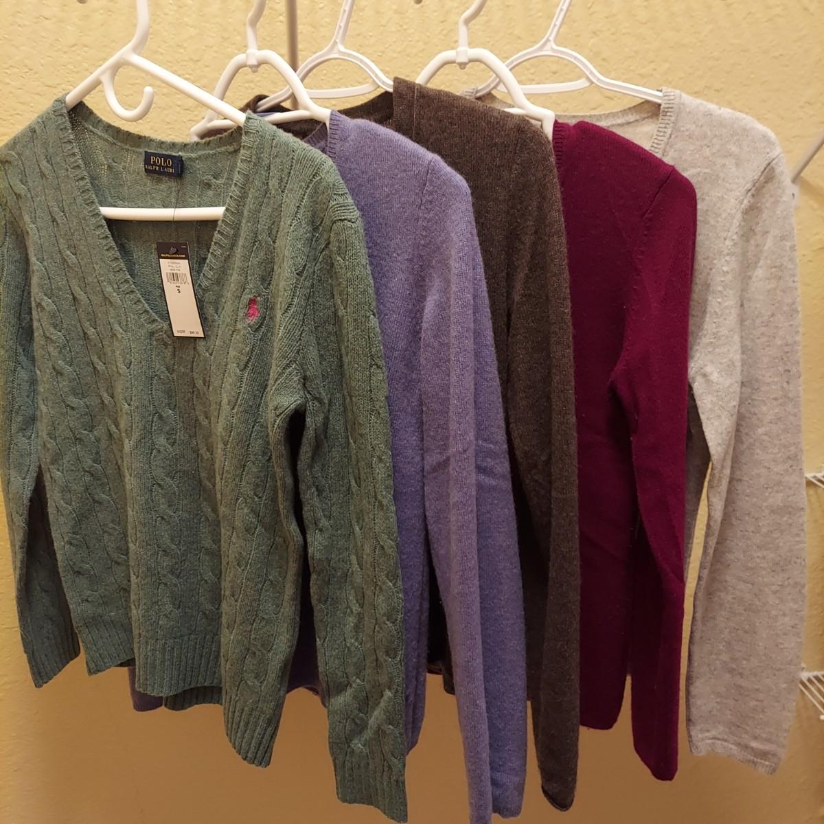 Five size small sweaters made of cashmere and wool. Polo Ralph Lauren, Olivia and Grace, Charter Club and more. The light grey Charter Club sweater has a small hole on the shoulder. Please see photos. Shipping available