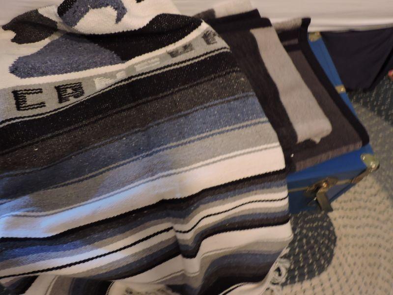 Wool blanket from Cancun and a coordinating fleece throw blanket.**Please read Terms and Conditions before placing a bid. Pick up is Sunday, September 15, 2019 from 11am to 4pm and Tuesday, September 17 from 4pm-7pm in Sicklerville. All sales are final. All sales are as is, where is. Please review all photos. Any props included in photos are not included in listing. All measurements are approximate.
