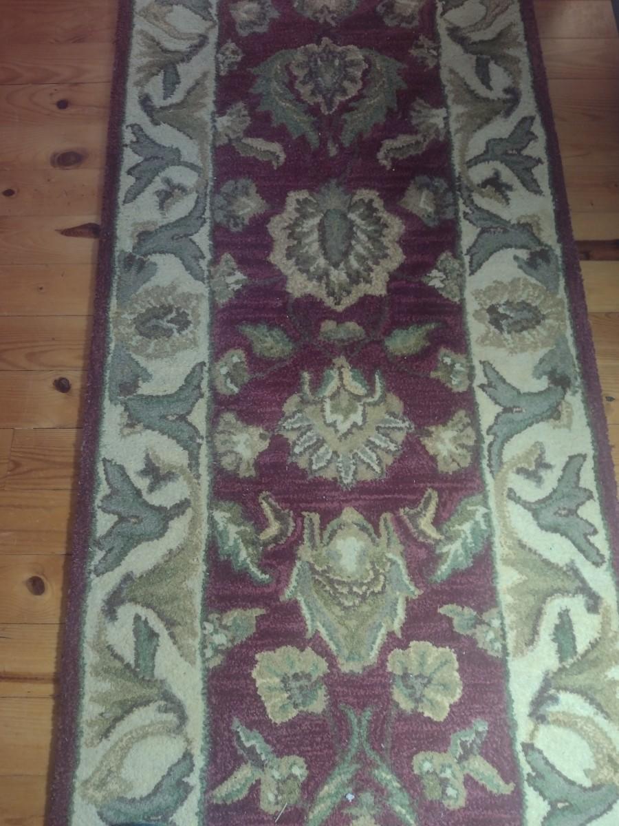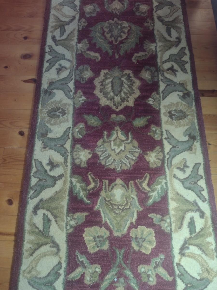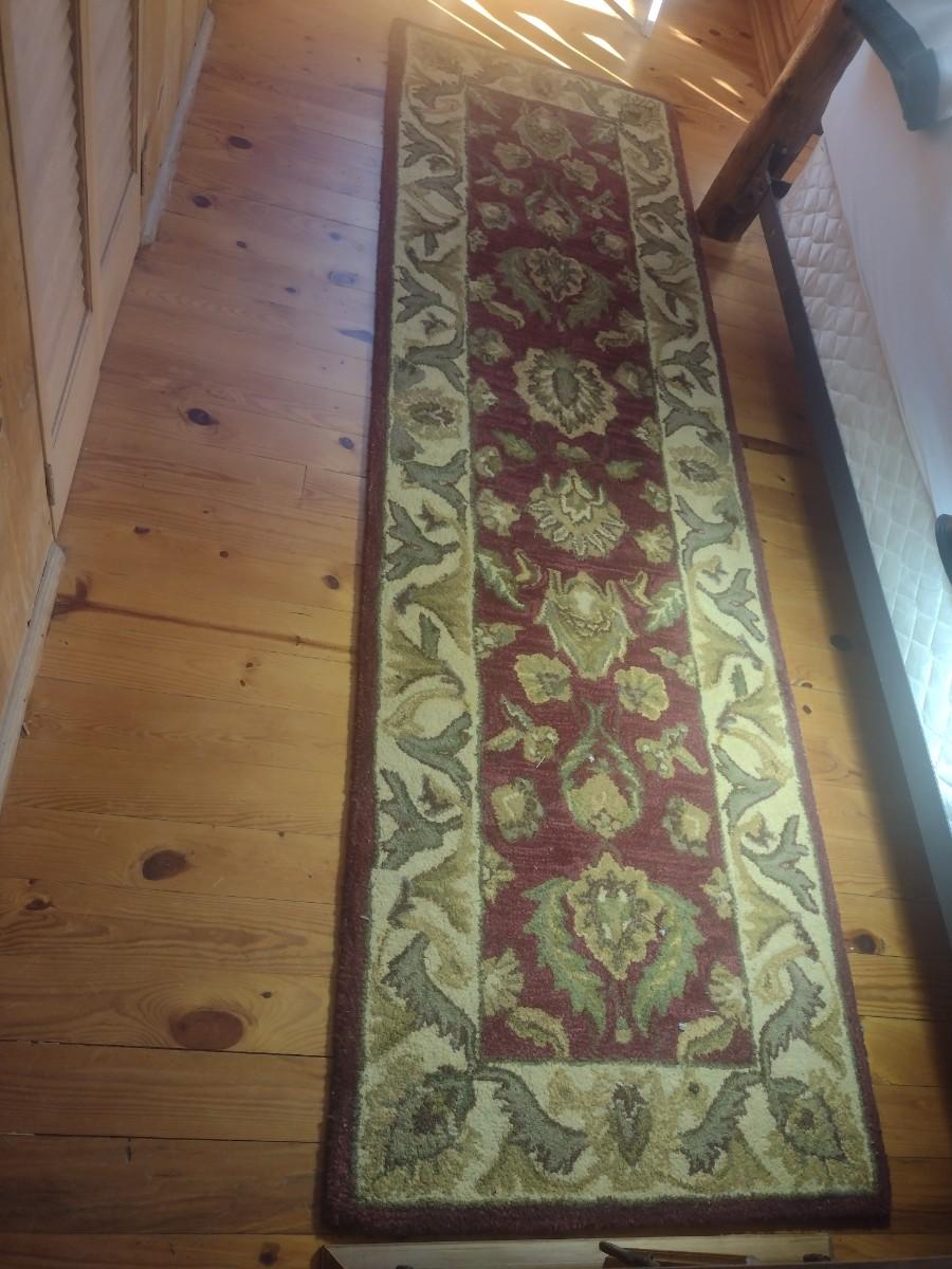 Wool Area Rug Runner (27" x 90") PLEASE NOTE:. Due to no internet connection or wireless service, all invoices must be prepaid via PayPal, Stripe, or Zelle prior to arrival at pick up. Exact change cash onsite is acceptable but absolutely no debit or credit cards at time of pick up.