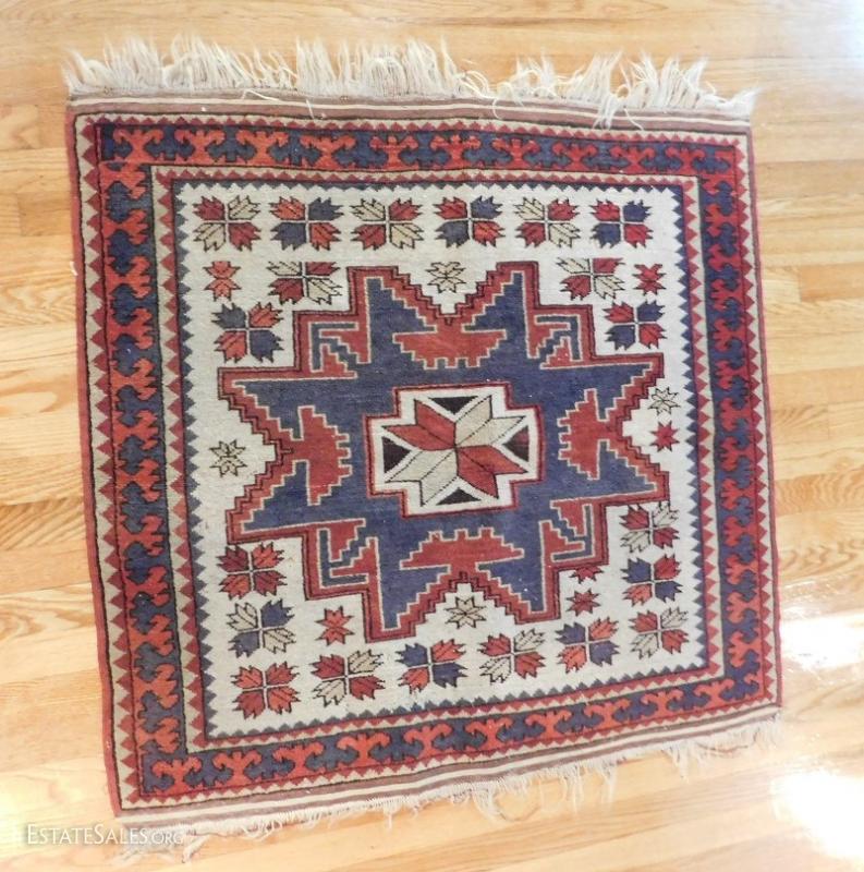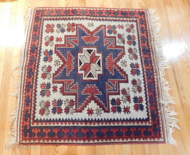 Wool Area Rug with Fringe 41" x 39". Needs cleaning