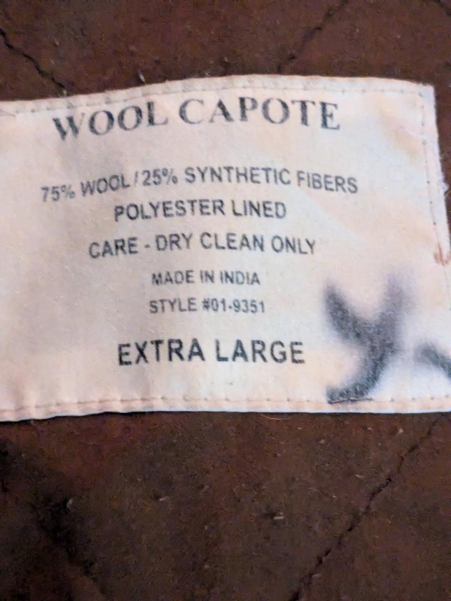 Wool Capote with Hood, XL; in good condition 4' in length, no ripe