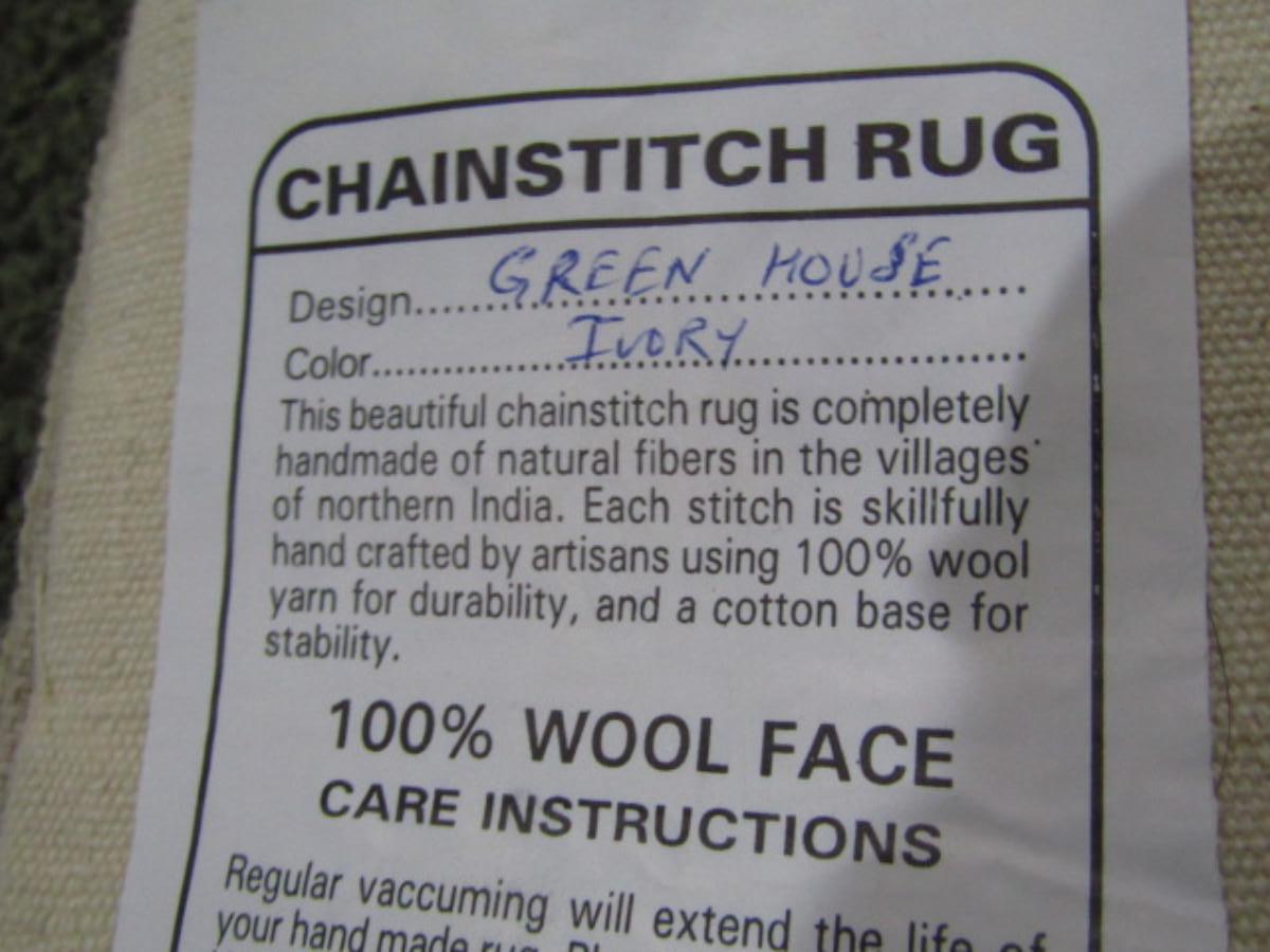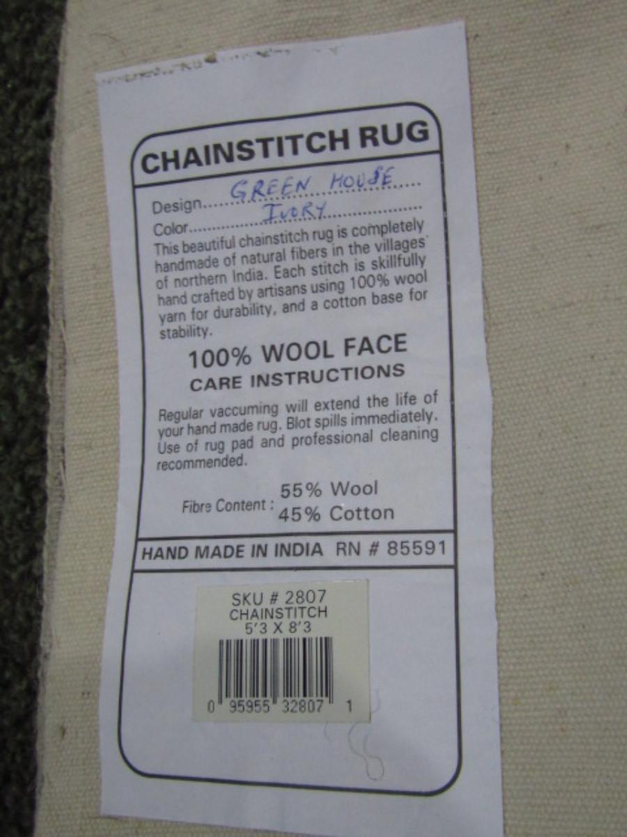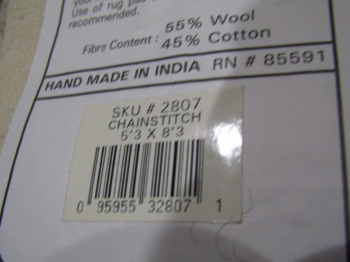 Wool Chainstitch Rug with Cotton Backing (Upstairs). Measures approx 5'3" x 8'3".