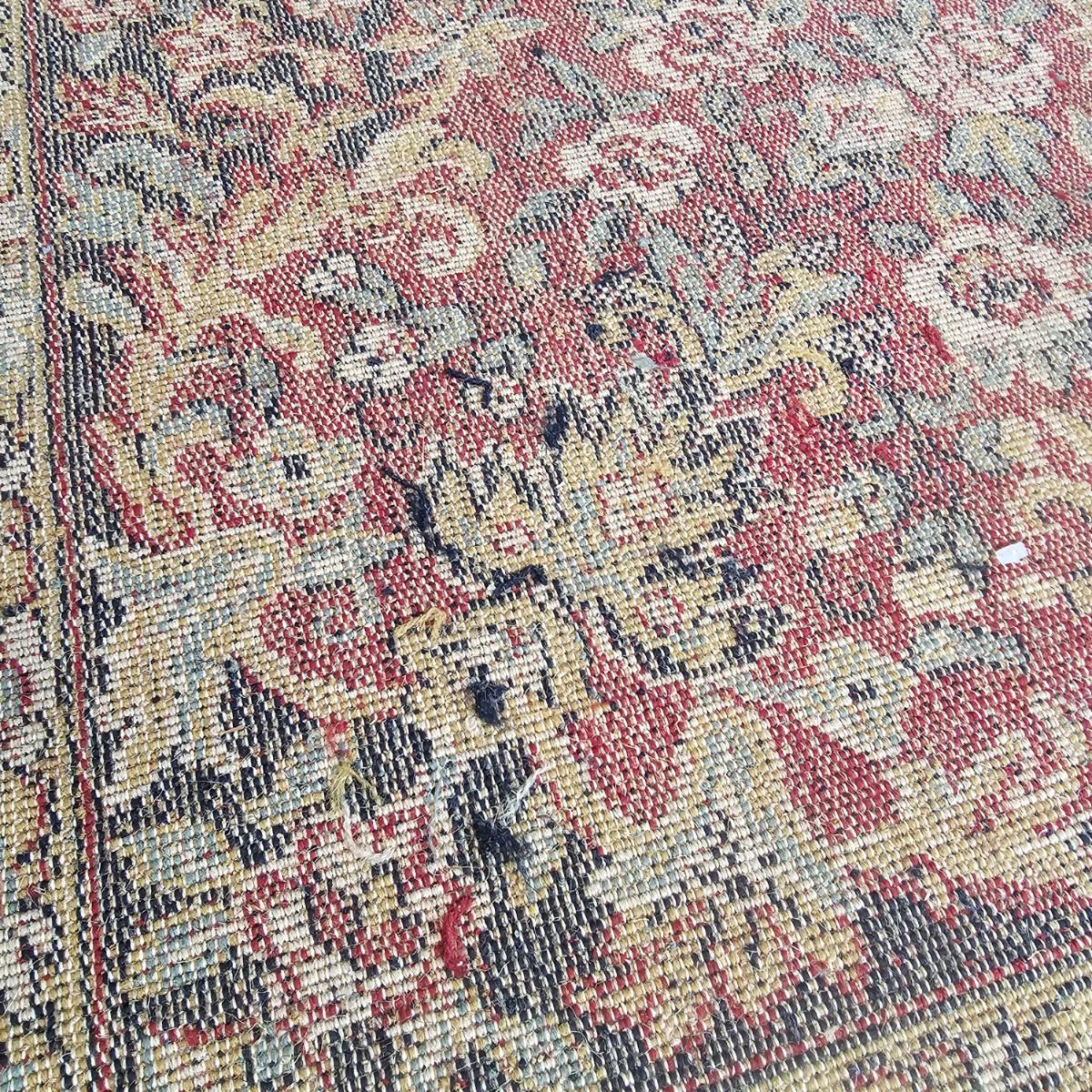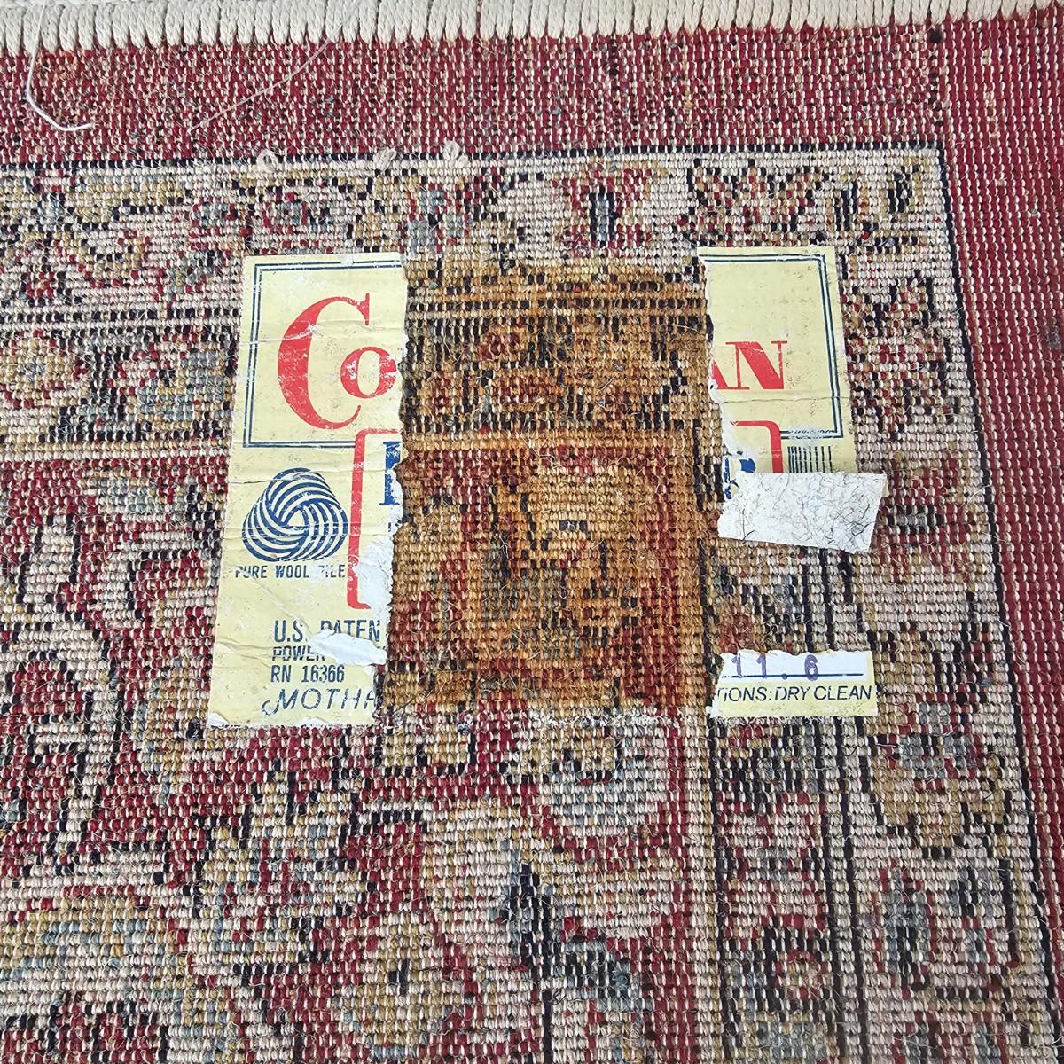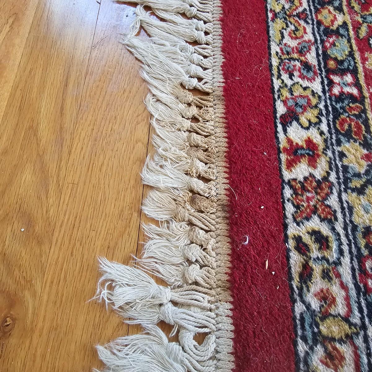 Vibrant reds and soft background colors highlight this Persian style area rug. 100% wool with knotted fringe ends, this rug measures 8'2" x 11' x 10". Partial tag on back attests to wool pile but is unreadable for manufacturer. Some staining on fringe on one end and has also been trimmed in that area. See photos for details. Local pickup only. Winning bidder must bring assistance to help move and load this item due to its weight and/or size.