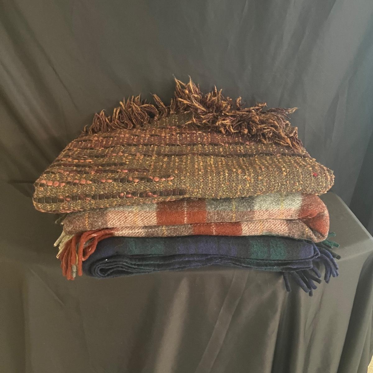 Lot includes a Horner wool throw, Pendleton wool throw that measures 52” x 74” and an unmarked throw.