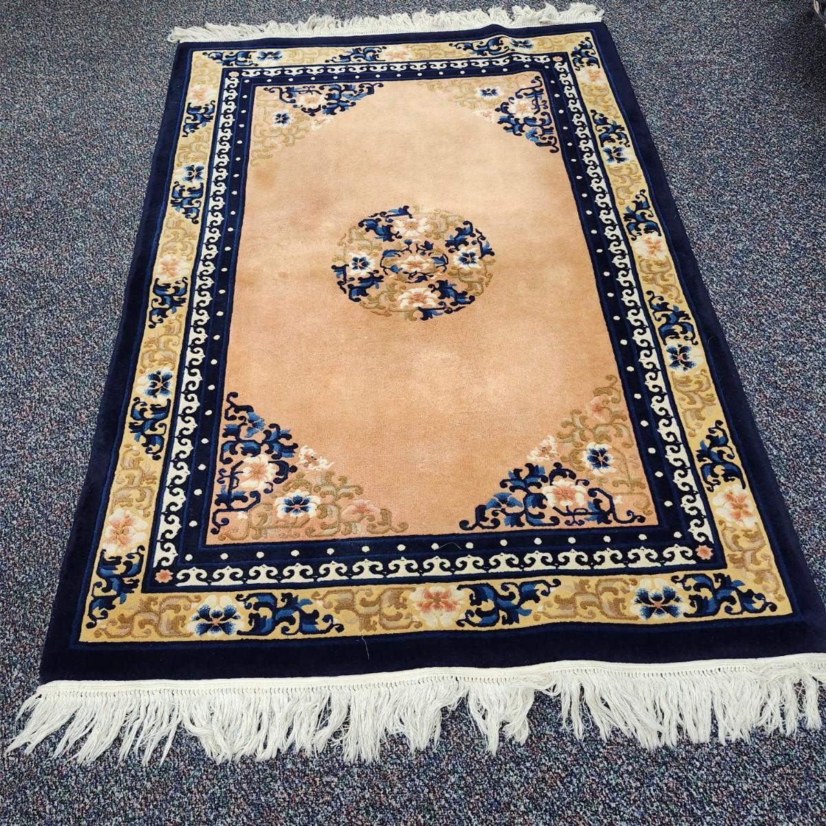 A marvelous hand knotted wool Chinese Peking area rug. A great way to transform a small space.