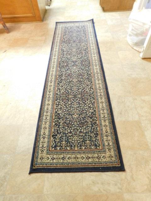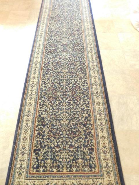 Wool Rug Runner Blue Shades and Beige Tints 91"x26" may need cleaning