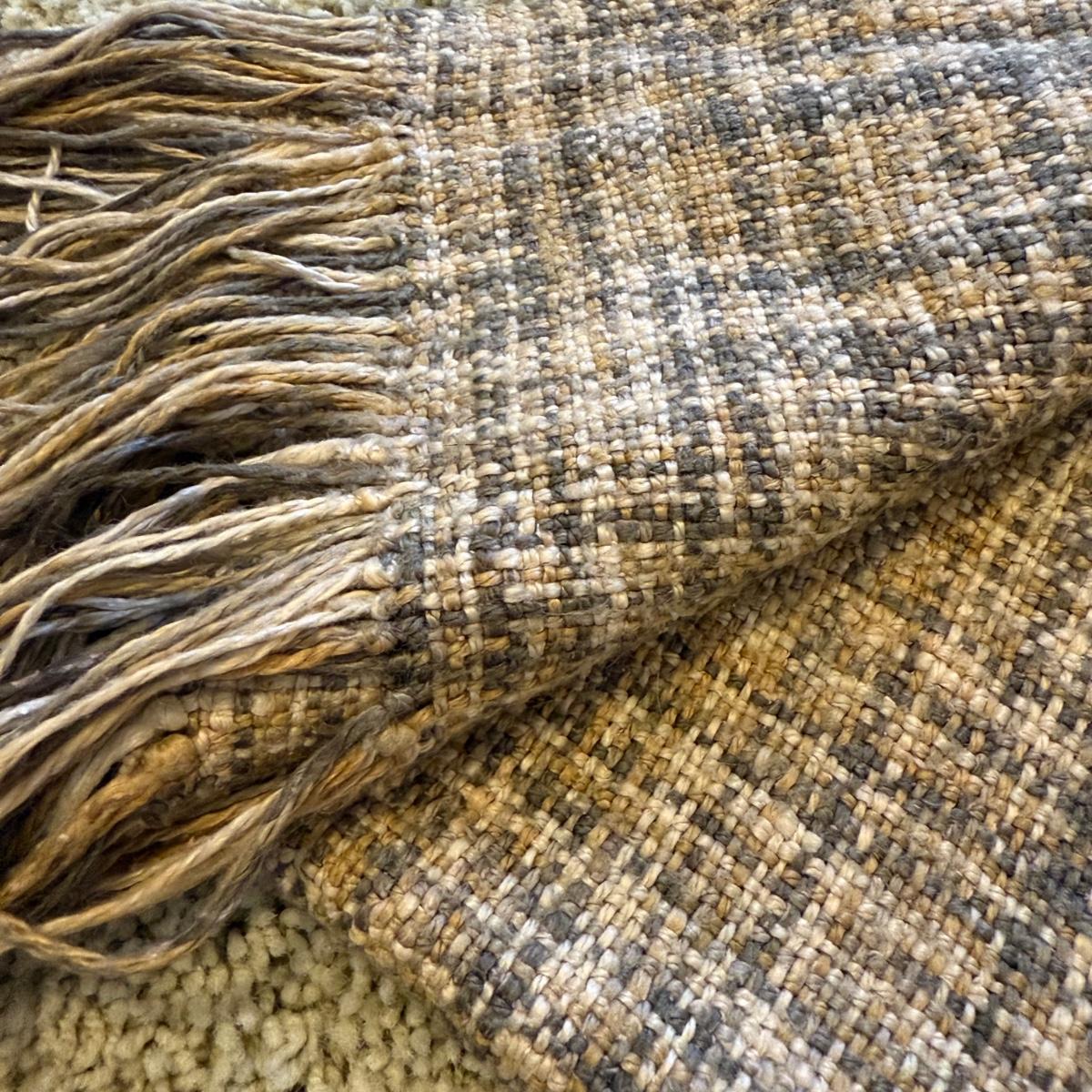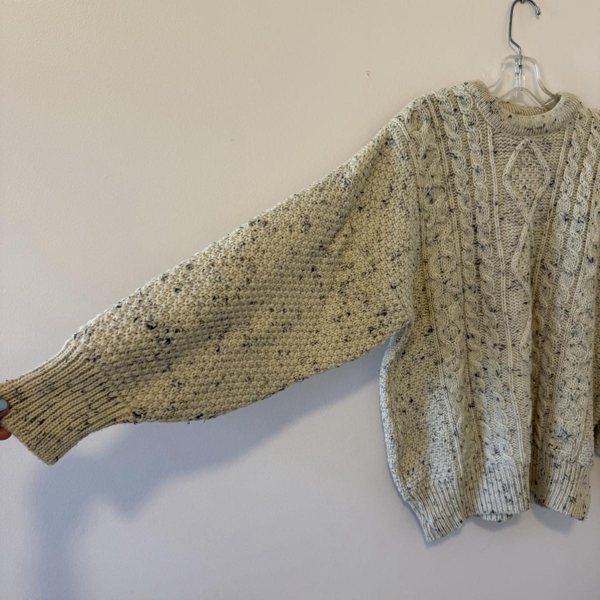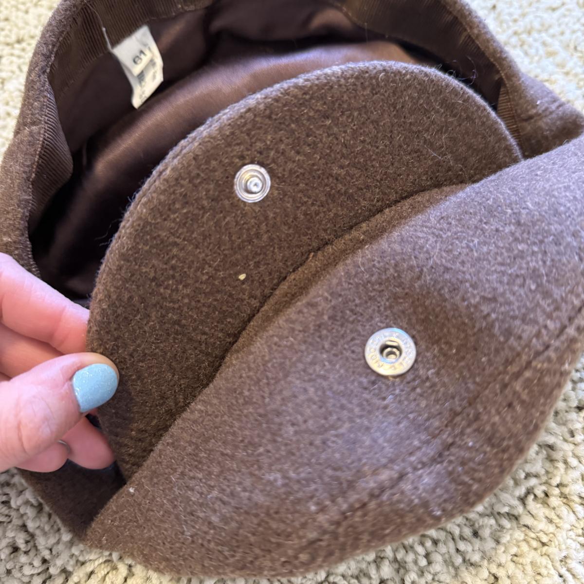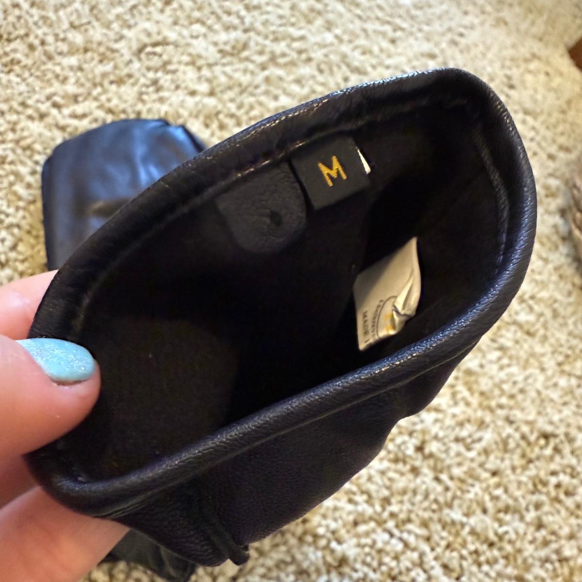 Three sweaters, one of which has a “Country Collection” tag and a “100% new wool” tag. The other two are button down cardigans that appear to be handmade. They have no tags, but feel like wool and fit about a size L/XL. A button on the teal cardigan has loose threads. Also included are a pair of Intercontinental Leathern Industries leather mittens (with finger separators inside), a Firenze wool newsboy style hat, and a scarf. Hangers are not included.