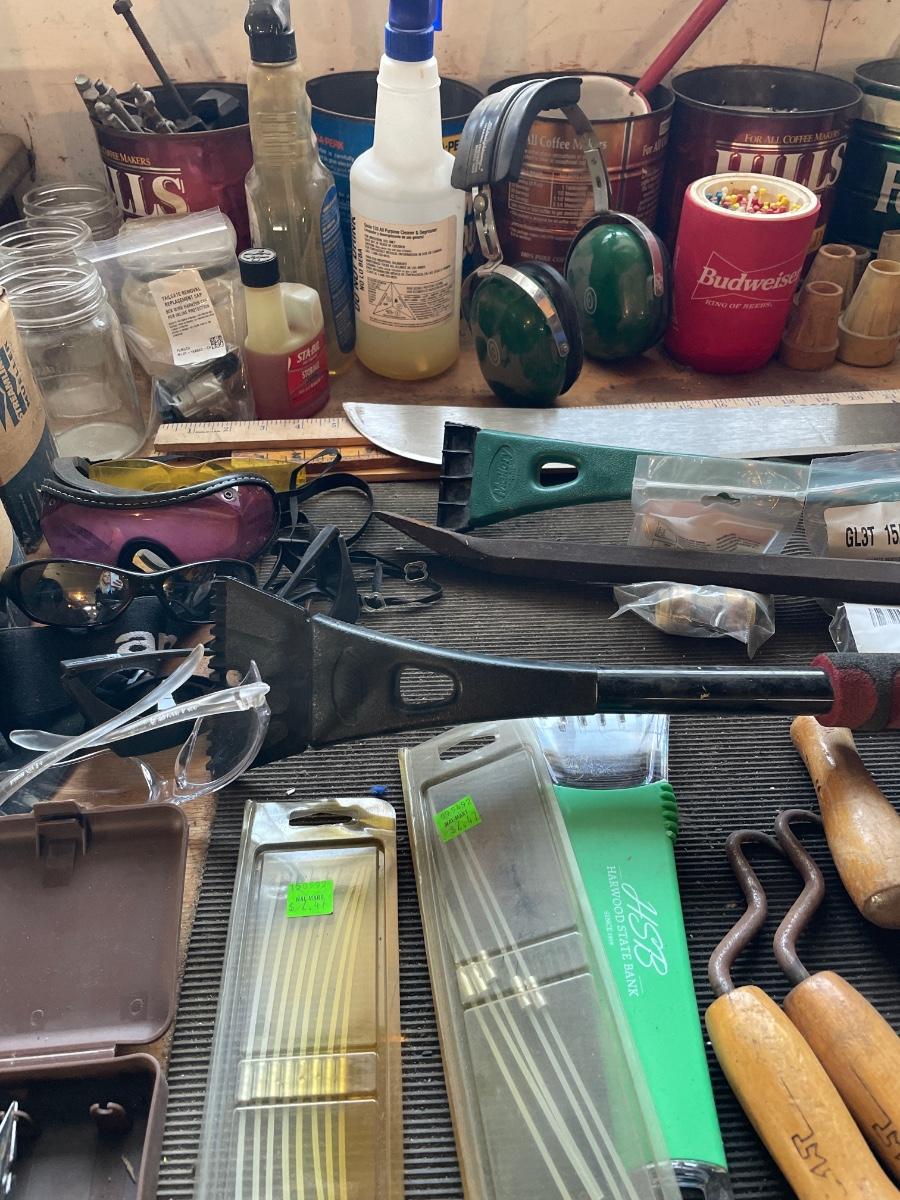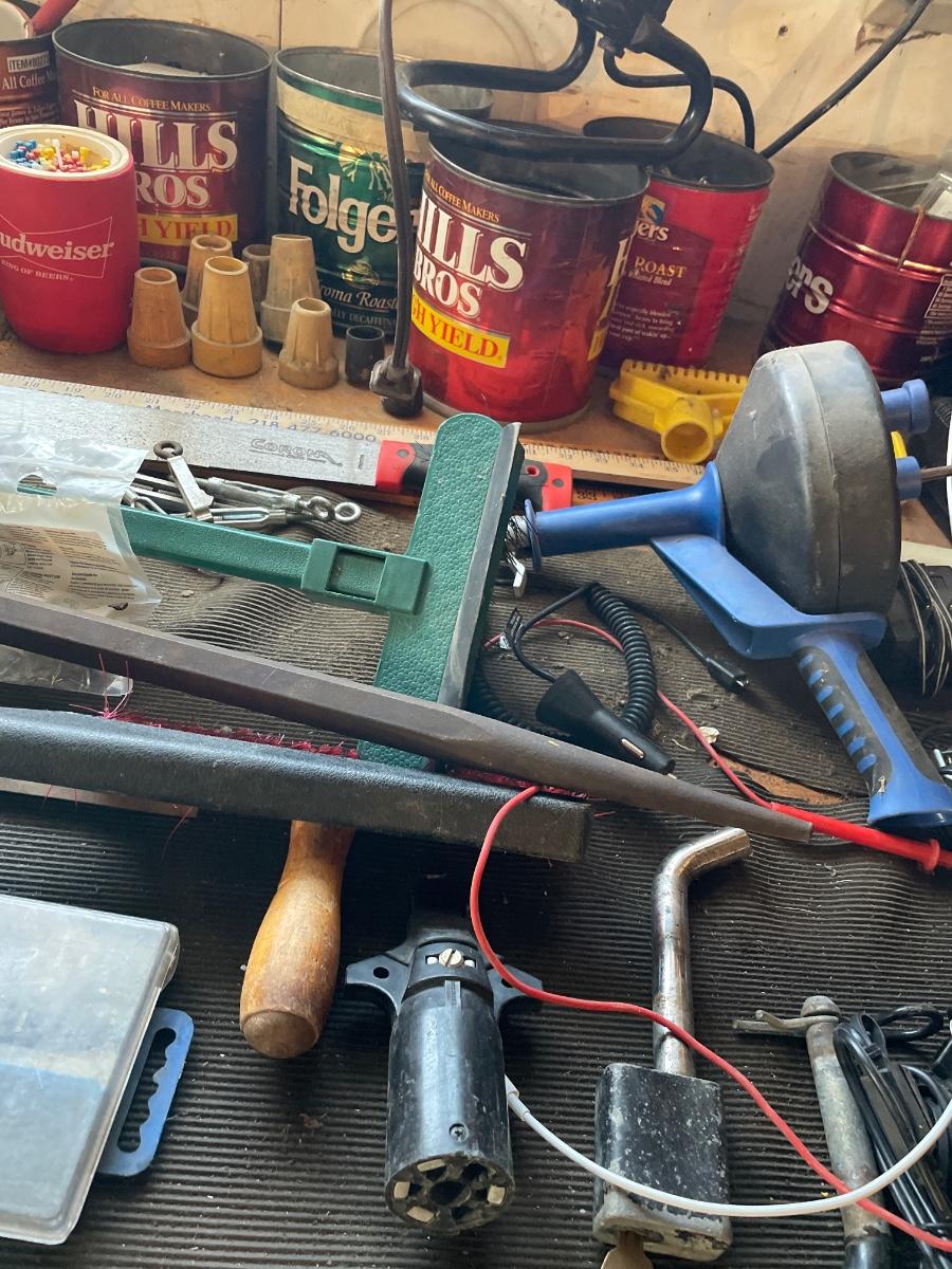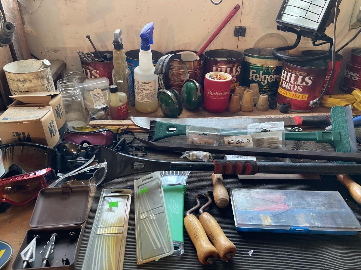 Garage items on work bench