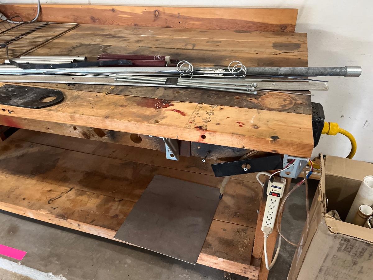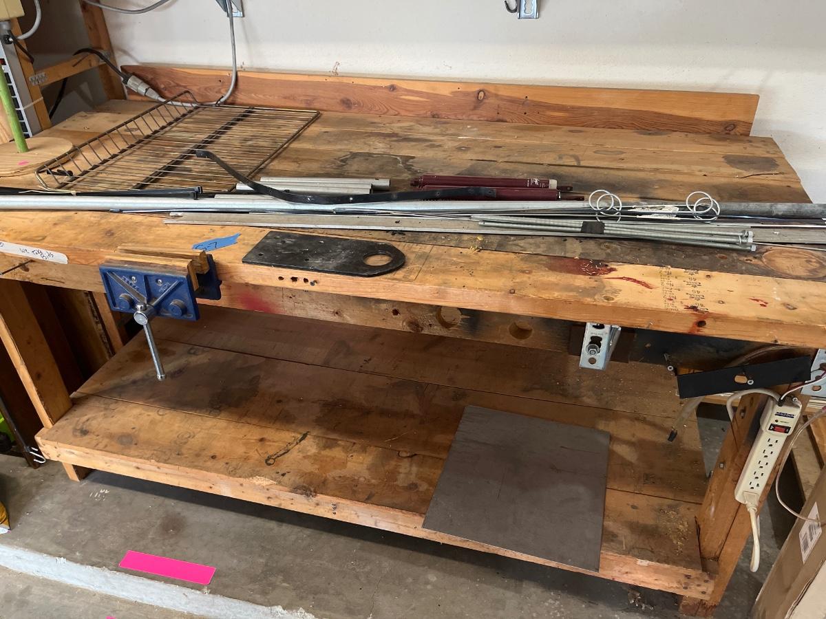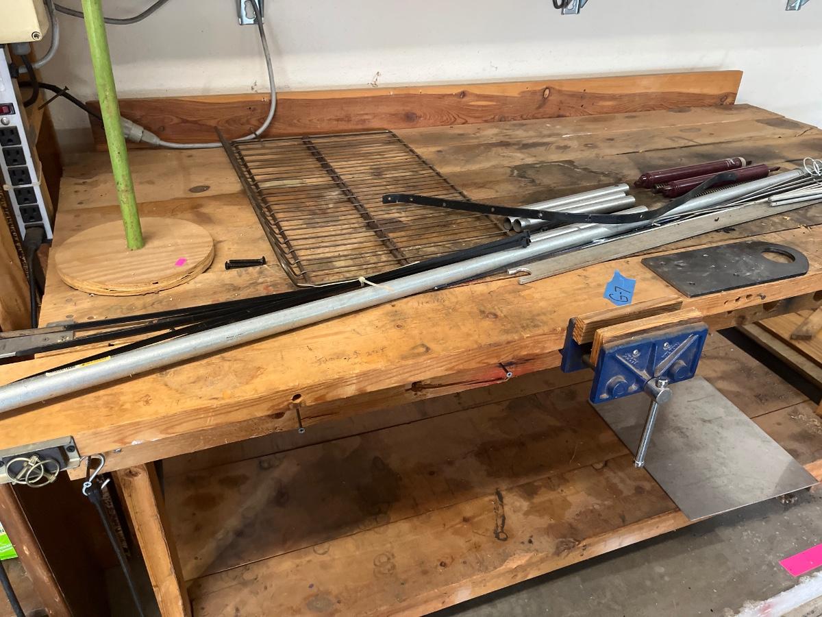 Work bench, metal objects, and misc. wood items