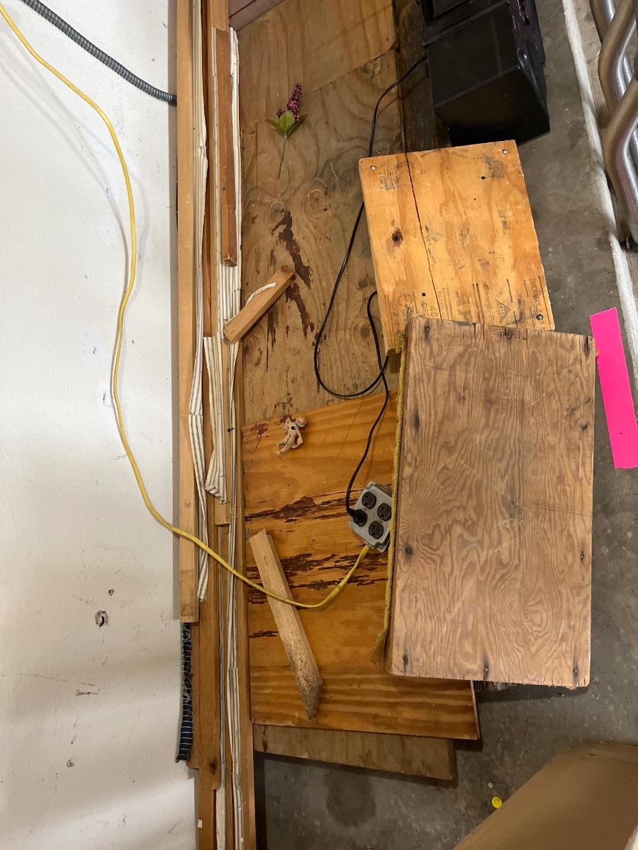 Work bench, metal objects, misc. wood items