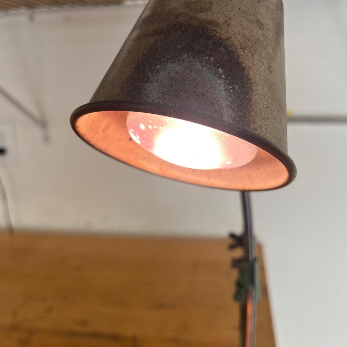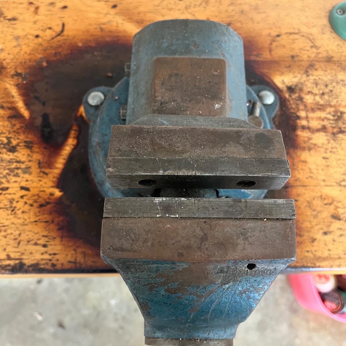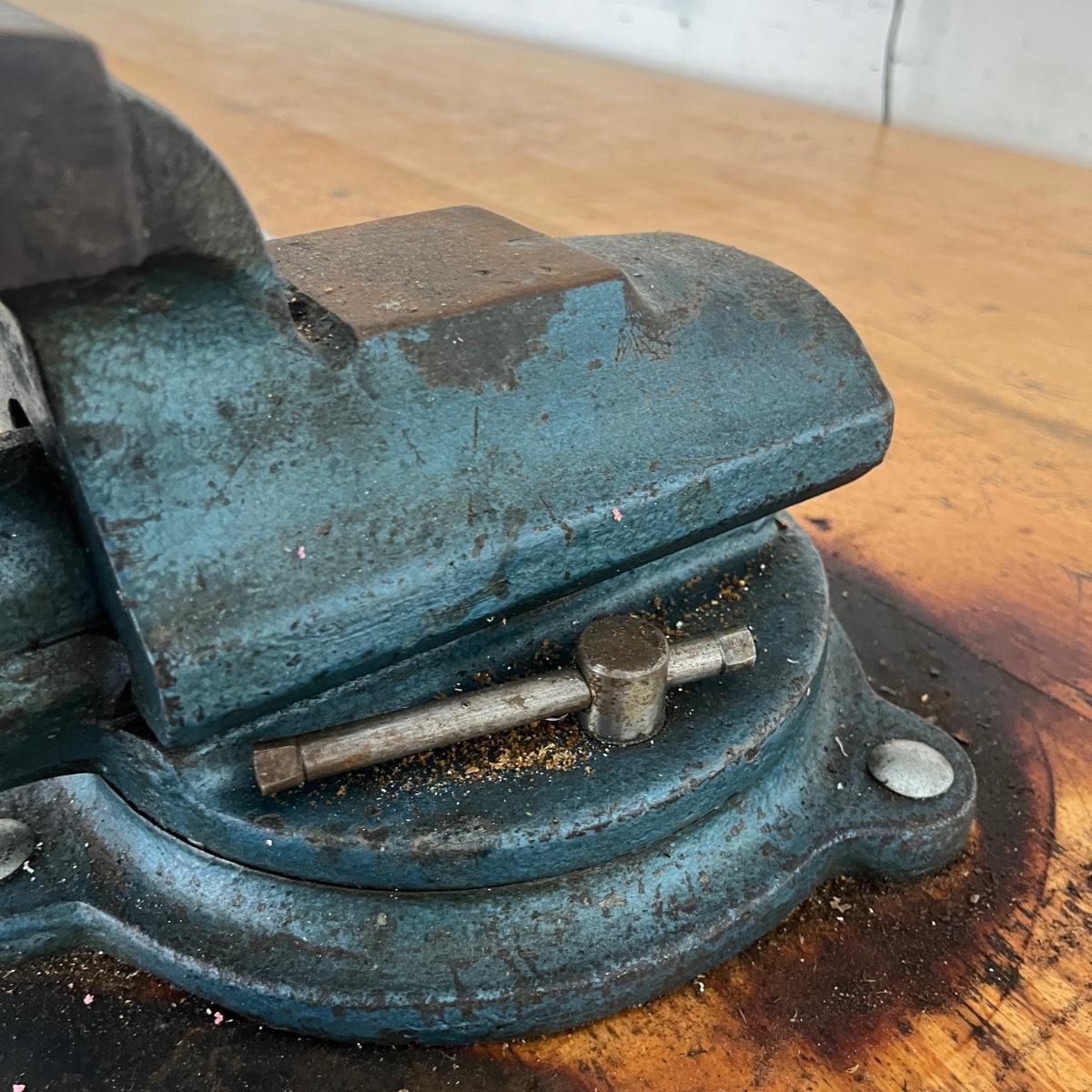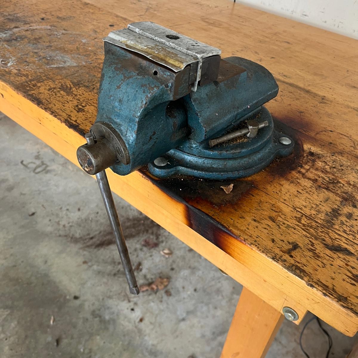 Lot includes a heavy wooden workbench with attached light and vise. Bench measures 84” x 30” x 35”H. Bench has nicks, scratches and stains, see pictures. Light powered on when plugged in.