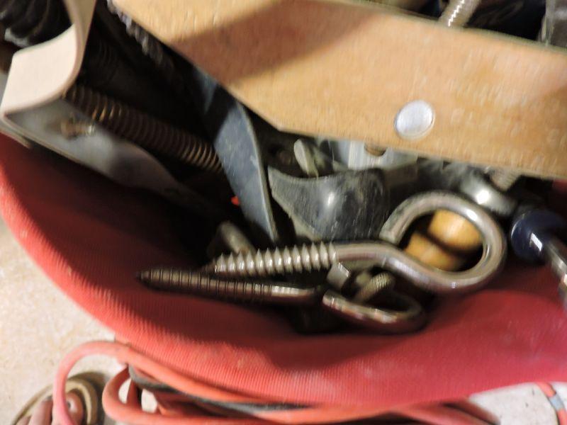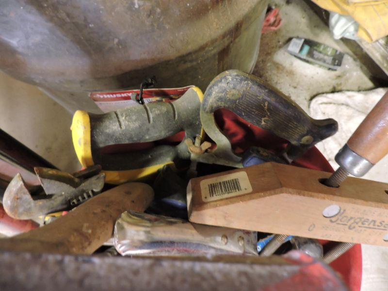 This work bucket is filled with tools of all sorts! It'll be like opening a Christmas stocking! Please read Terms and Conditions before placing a bid. Pick up is Friday, October 25th between 4 and 7, and Saturday, October 26th between 9 and 1. Please bring boxes, tools, and muscle to help move your items. Props included in photos are not included in listing. All measurements are approximate.