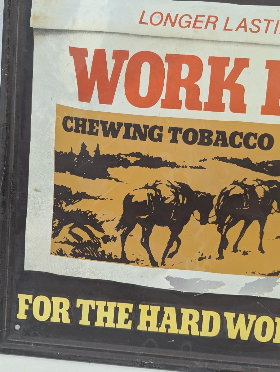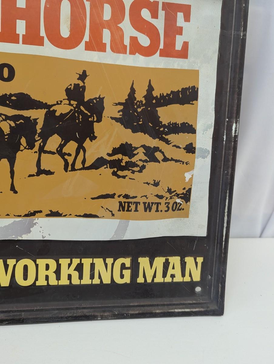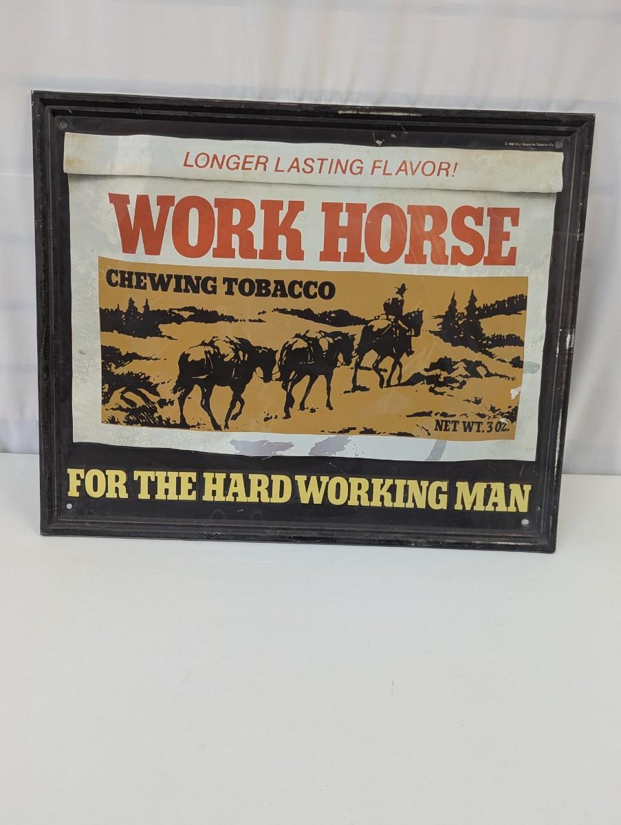 Work Horse Chewing Raised Letters Tobacco Metal Sign "For The Hard Working Man" Approx 21 1/2" x 17 1/2"