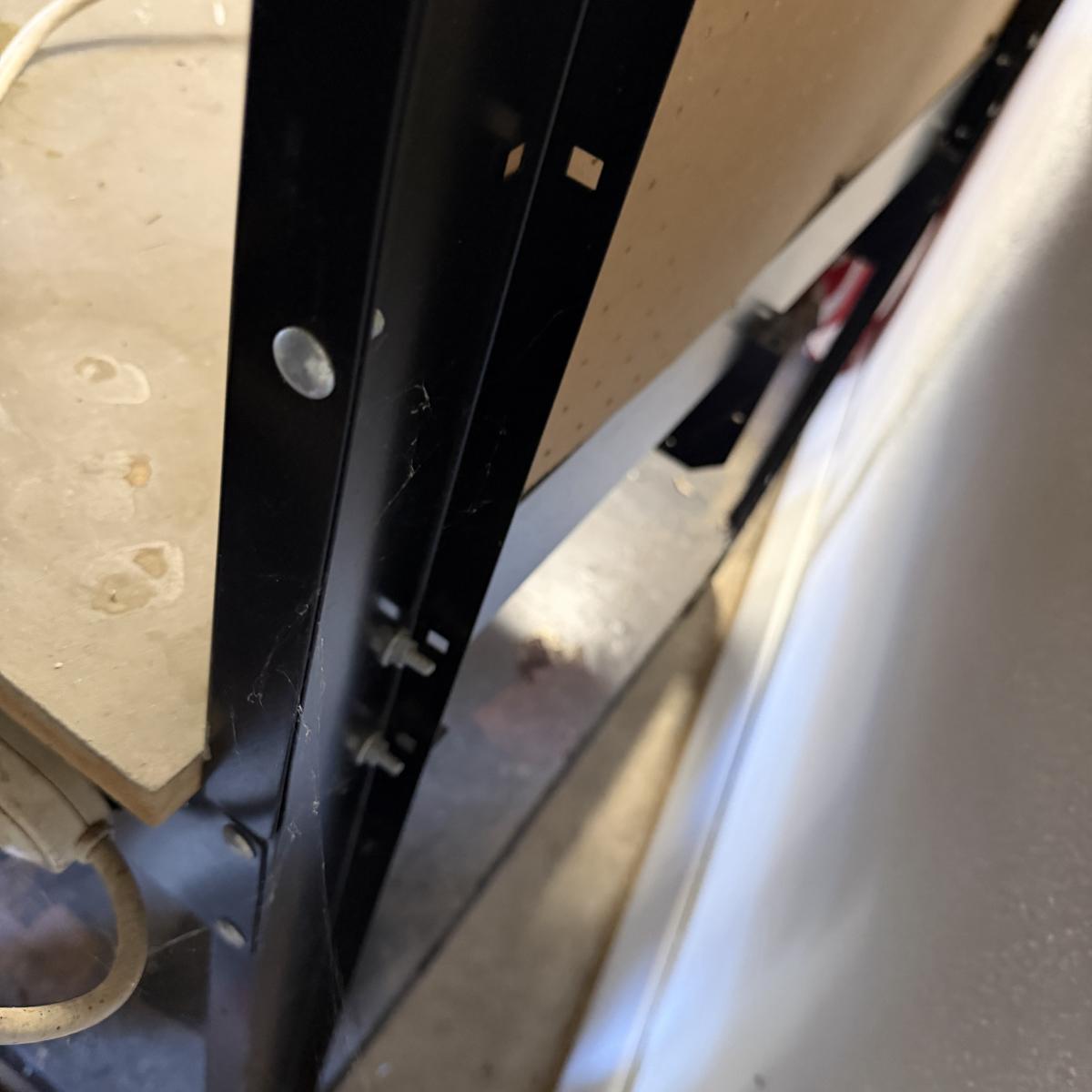 This metal workbench has four drawers with Wilton vise, light and pegboard with top shelf. Workbench measures 46” x 23” x 64”H with a 36”H bench height. Bottom shelf has surface rust, see pictures.