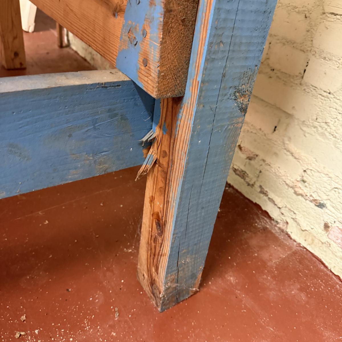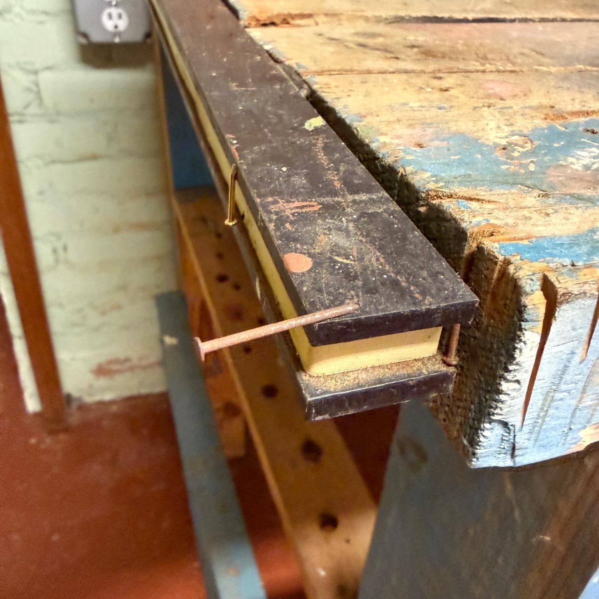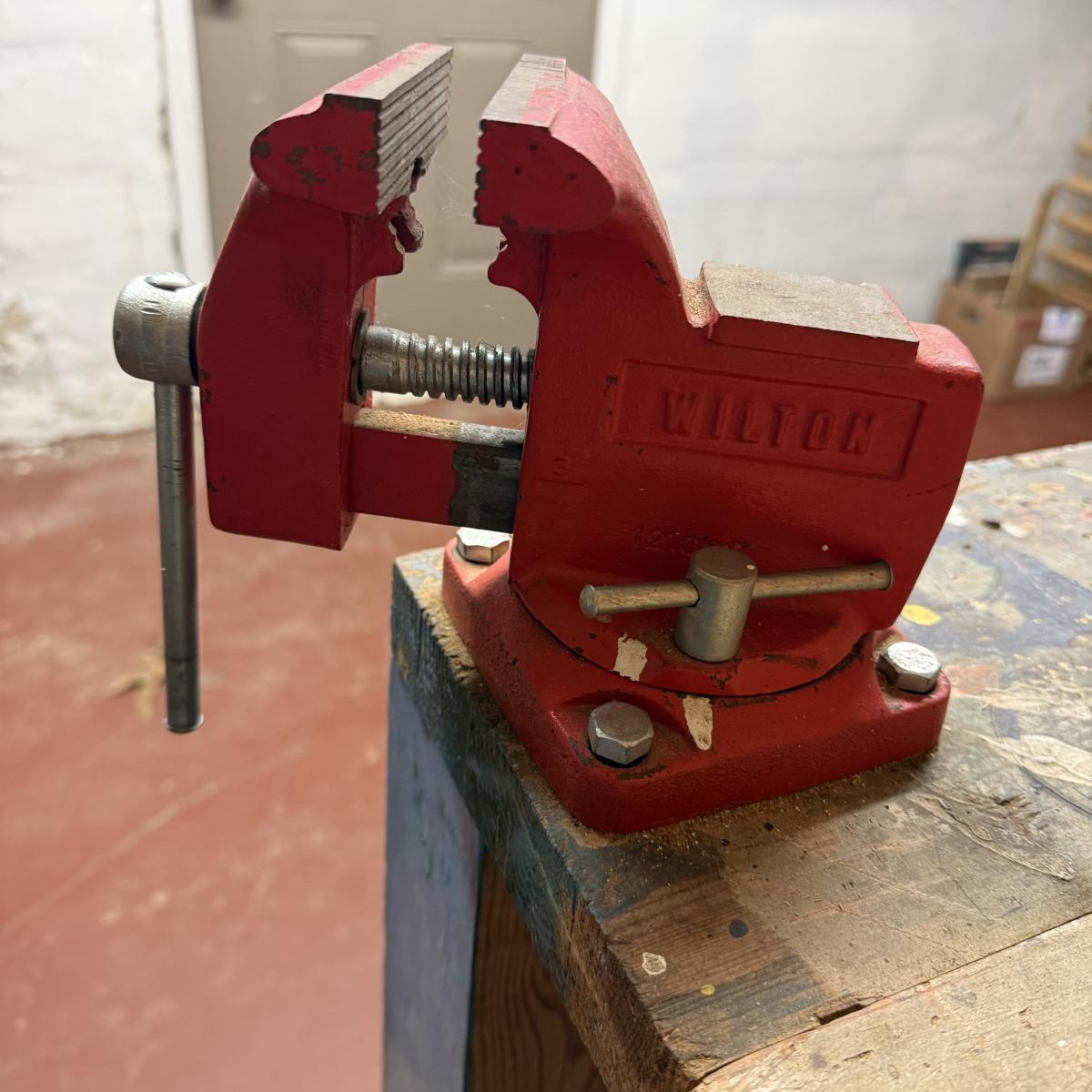 Solid wooden workbench with Wilton vise and magnetic strip attached comes with the pegboard. This well used workbench measures 60” x 30” x 36.25”H. The pegboard itself is 84.25” x 48”H, and is raised 36” from the floor with its posts. It’s attached with a few screws, so the winning bidder will need to bring a flathead screwdriver to remove from the wall. It was nailed into the brick mortar, but the nails popped right out (still attached to the board). It’s possible that it’s only attached to the wall with the nails, and the screws are only holding it to the frame. Best to come prepared for either situation. A pry bar could come in handy.