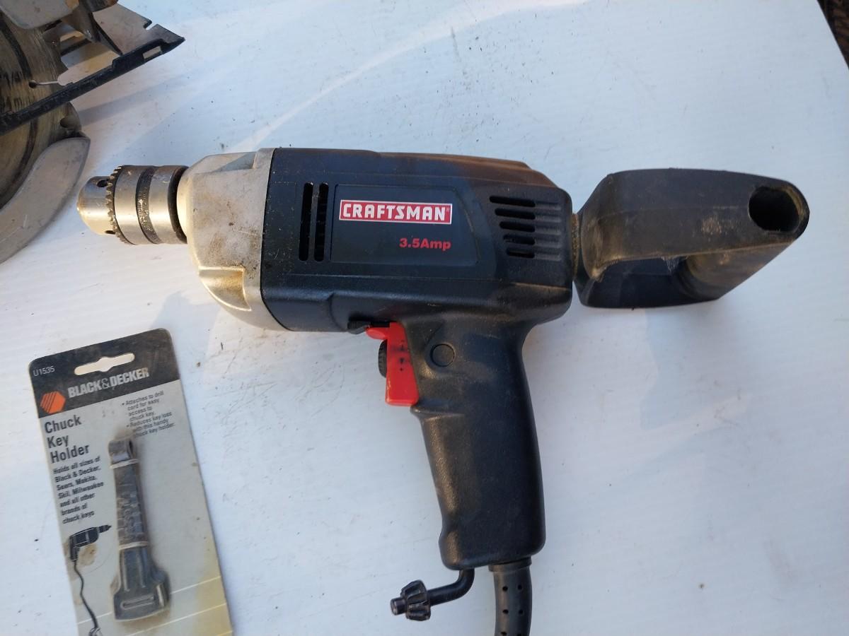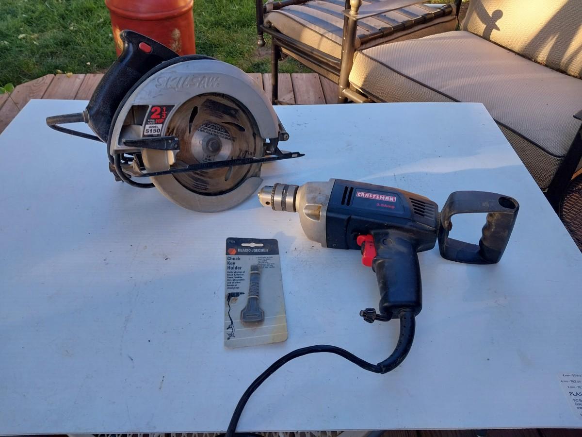 WORKING CIRCULAR SAW, 1/2" DRILL AND CHUCK KEY HOLDER