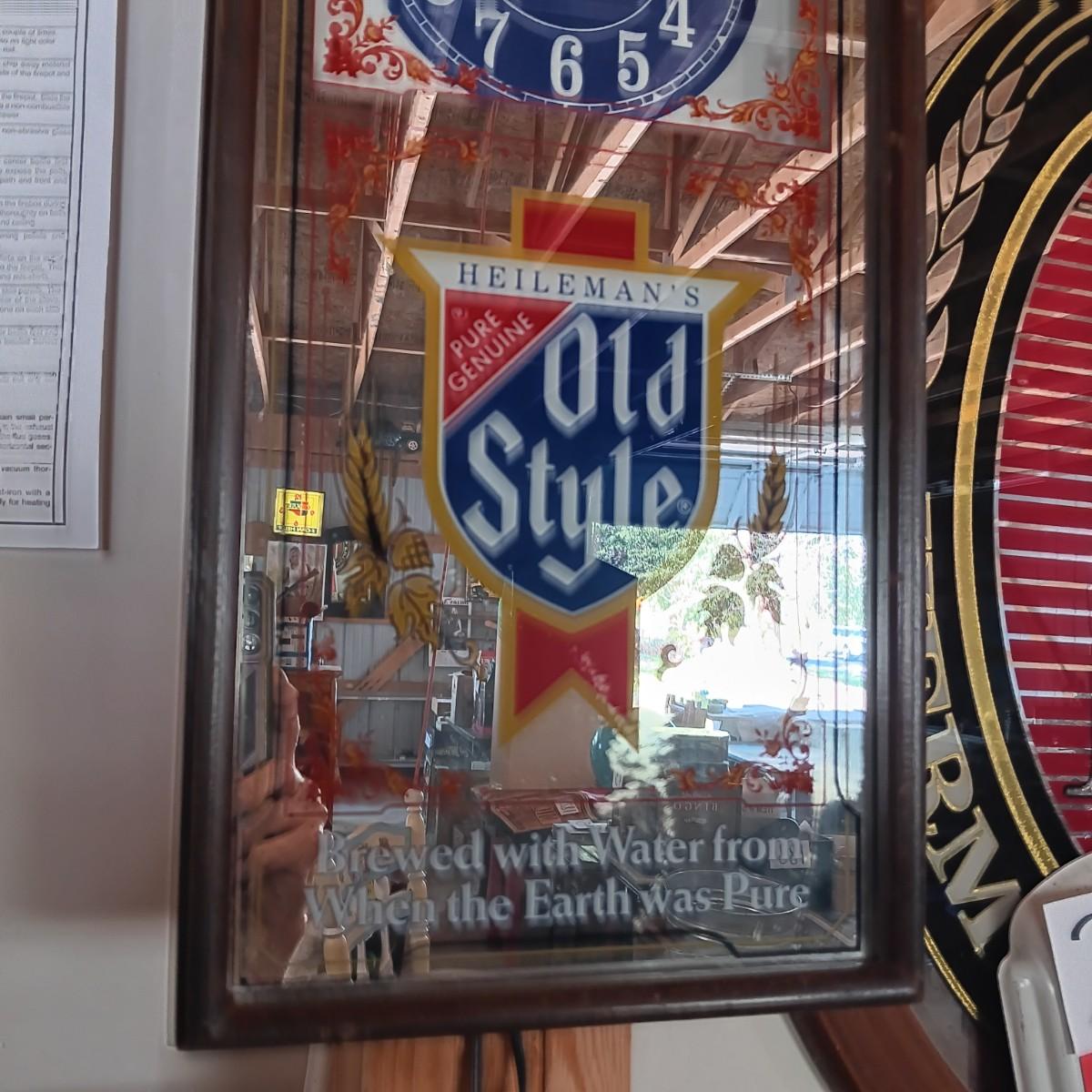 WORKING MIRRORED OLD STYLE BEER SIGN WITH CLOCK
