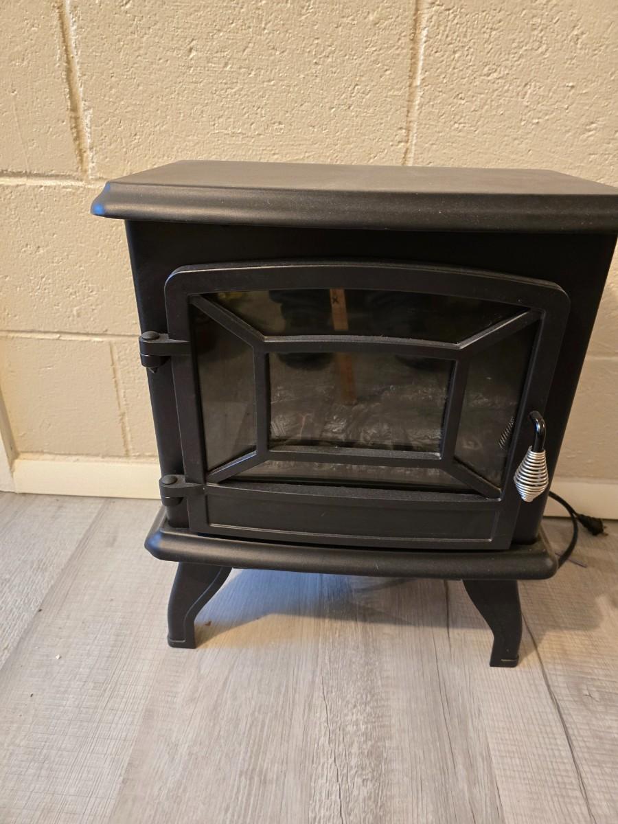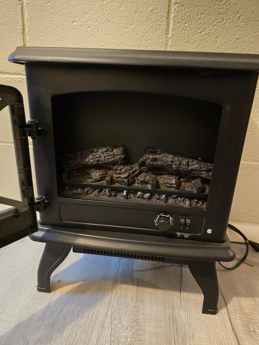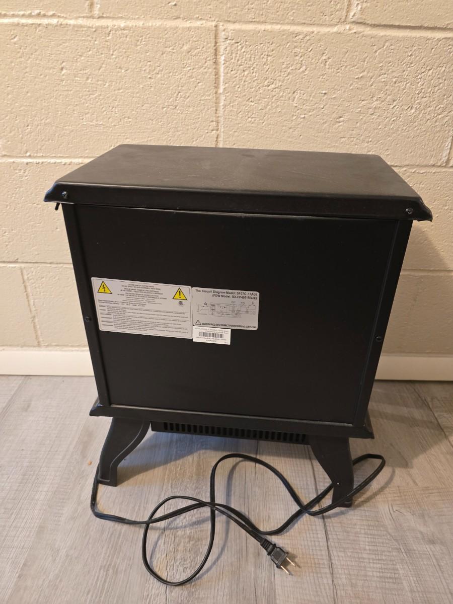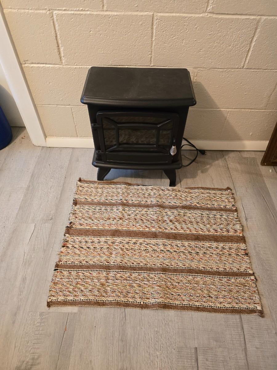 Working Space heater fireplace Model SF57C-17A00 with brown braided throw rug