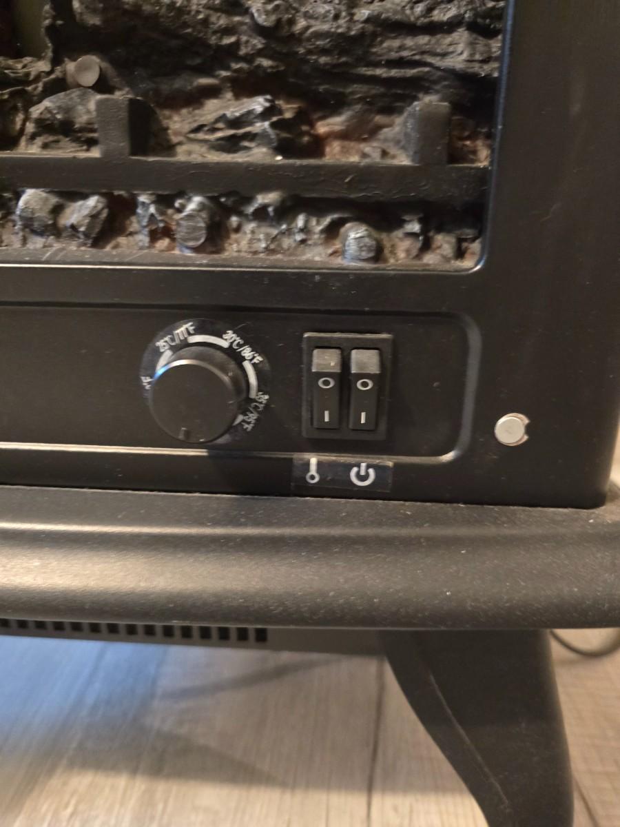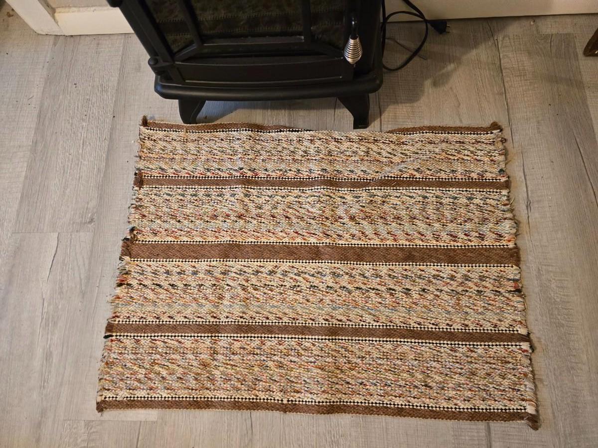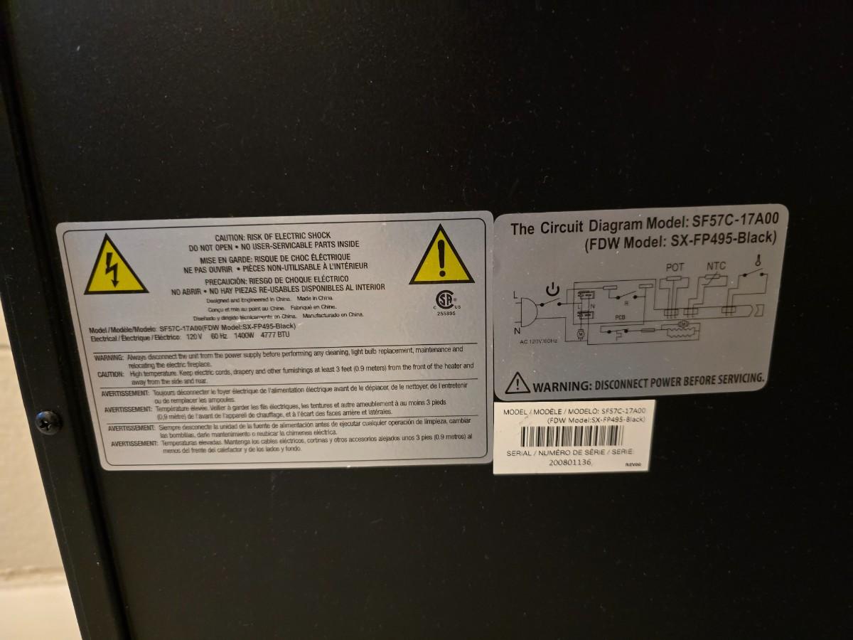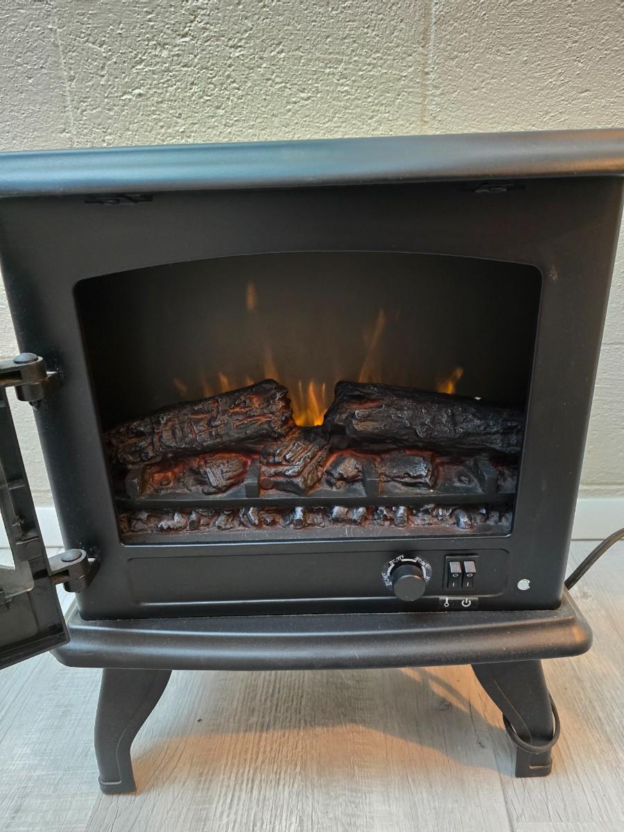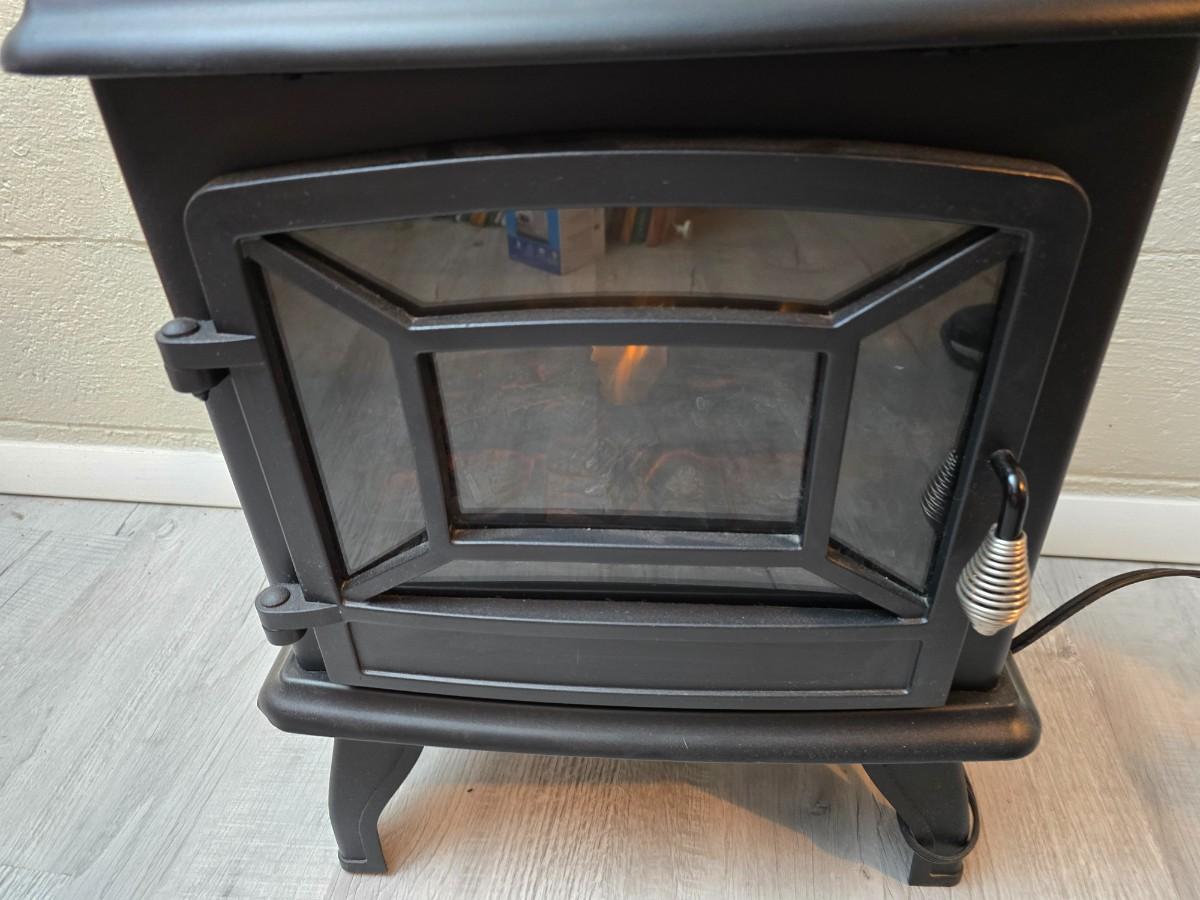 Working Space heater fireplace Model SF57C-17A00 with brown braided throw rug