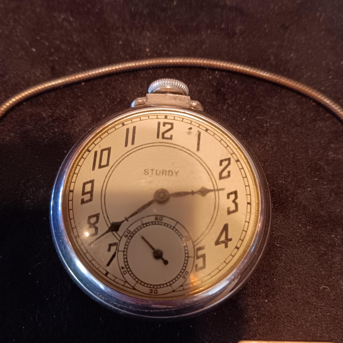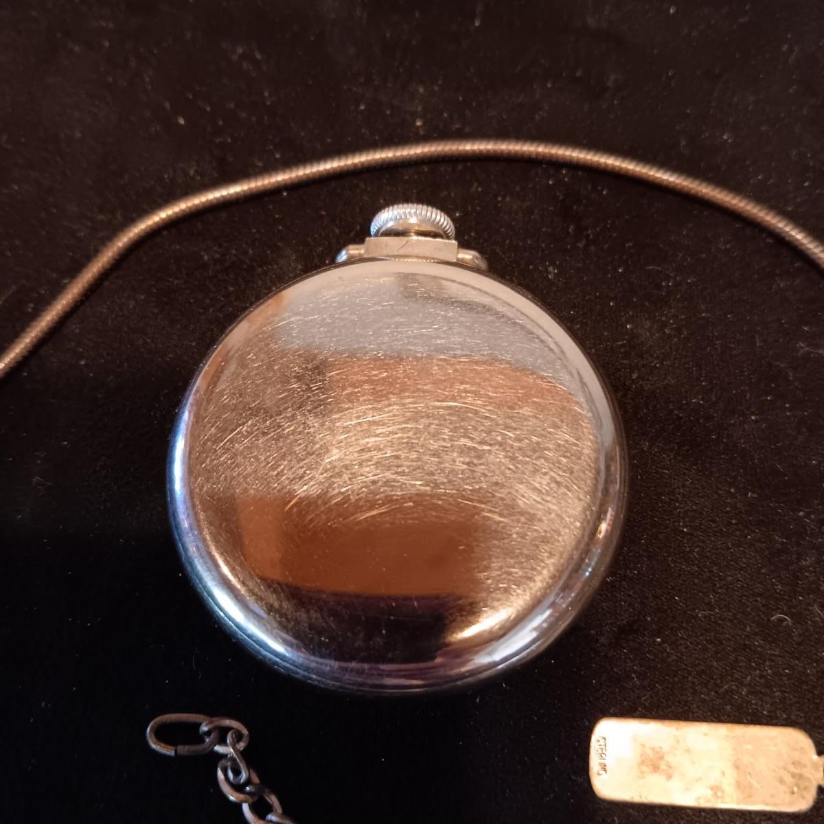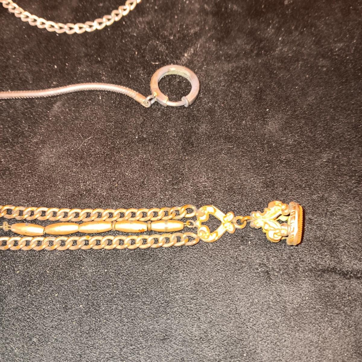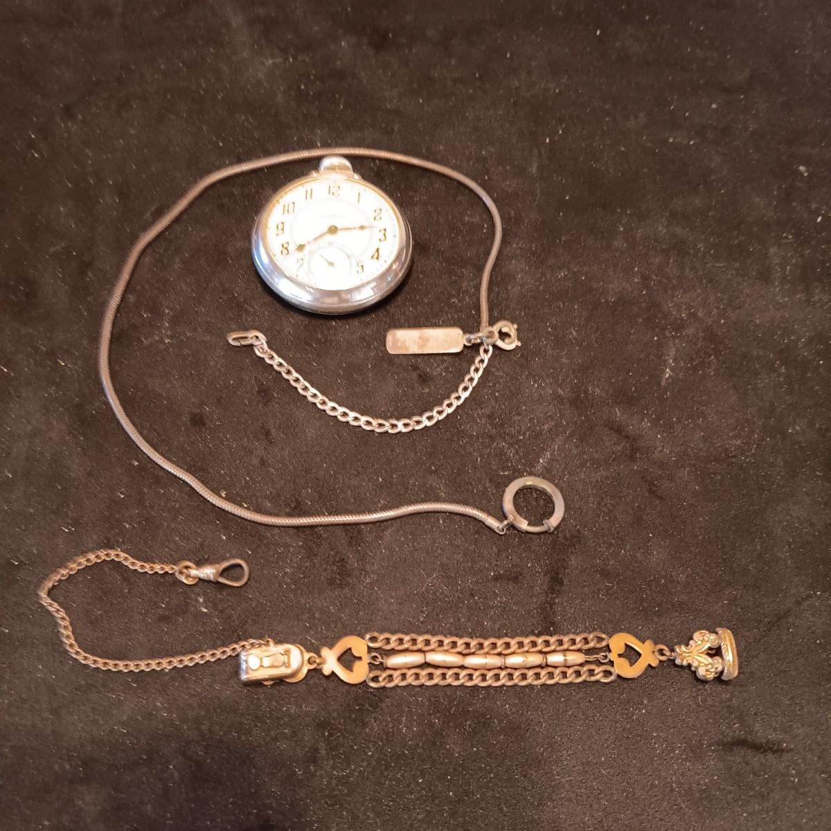 1 POCKET CHAIN HAS A SMALLER CHAIN ATTACHED THAT IS STERLING SILVER