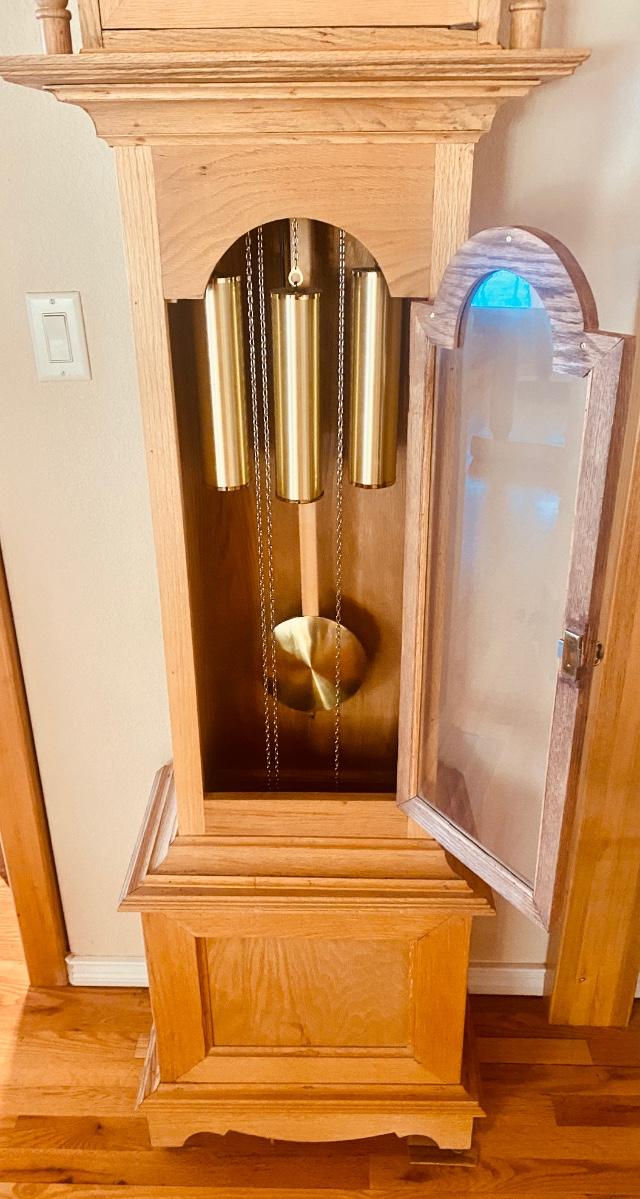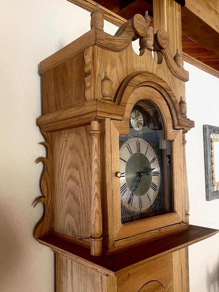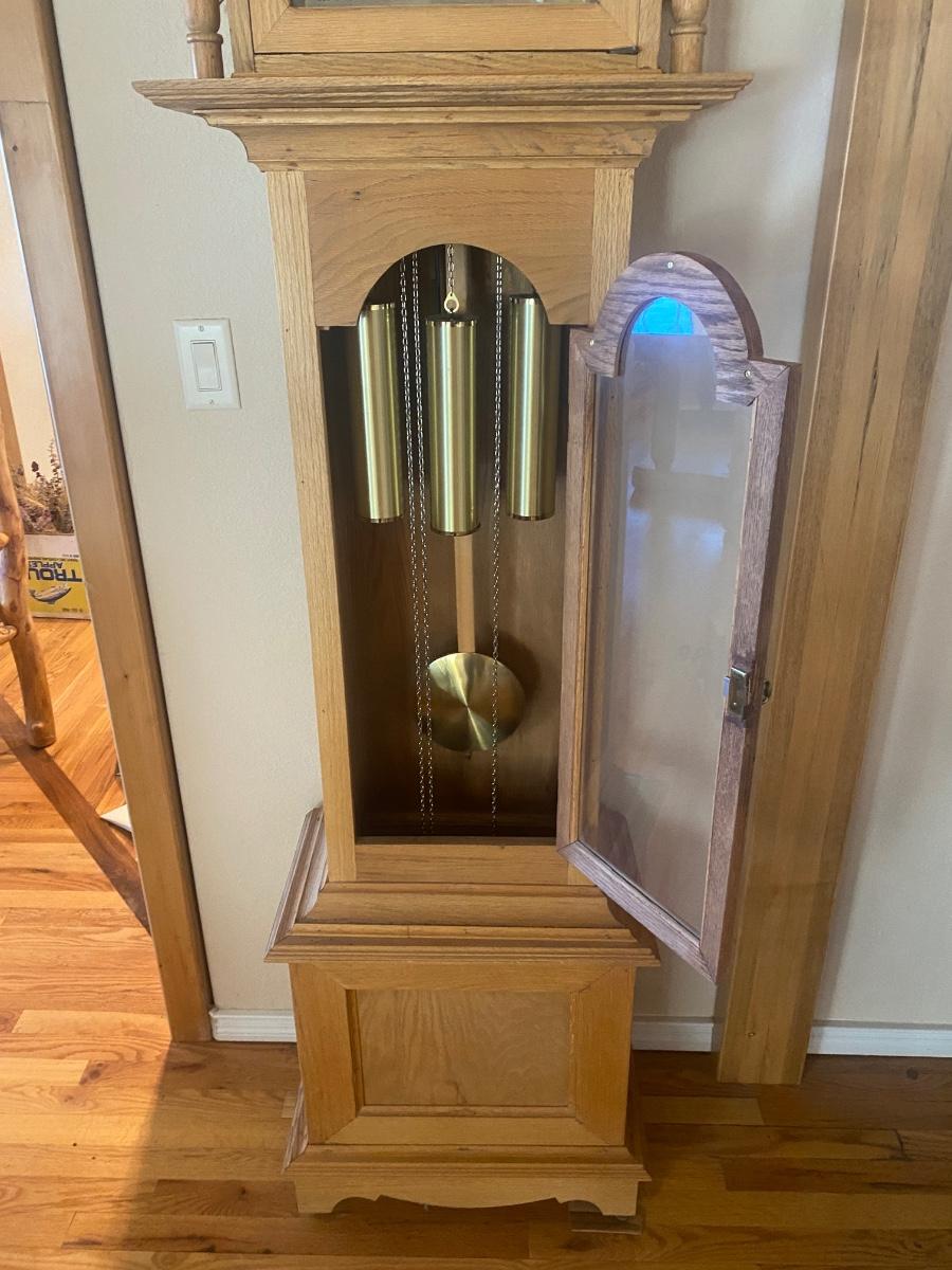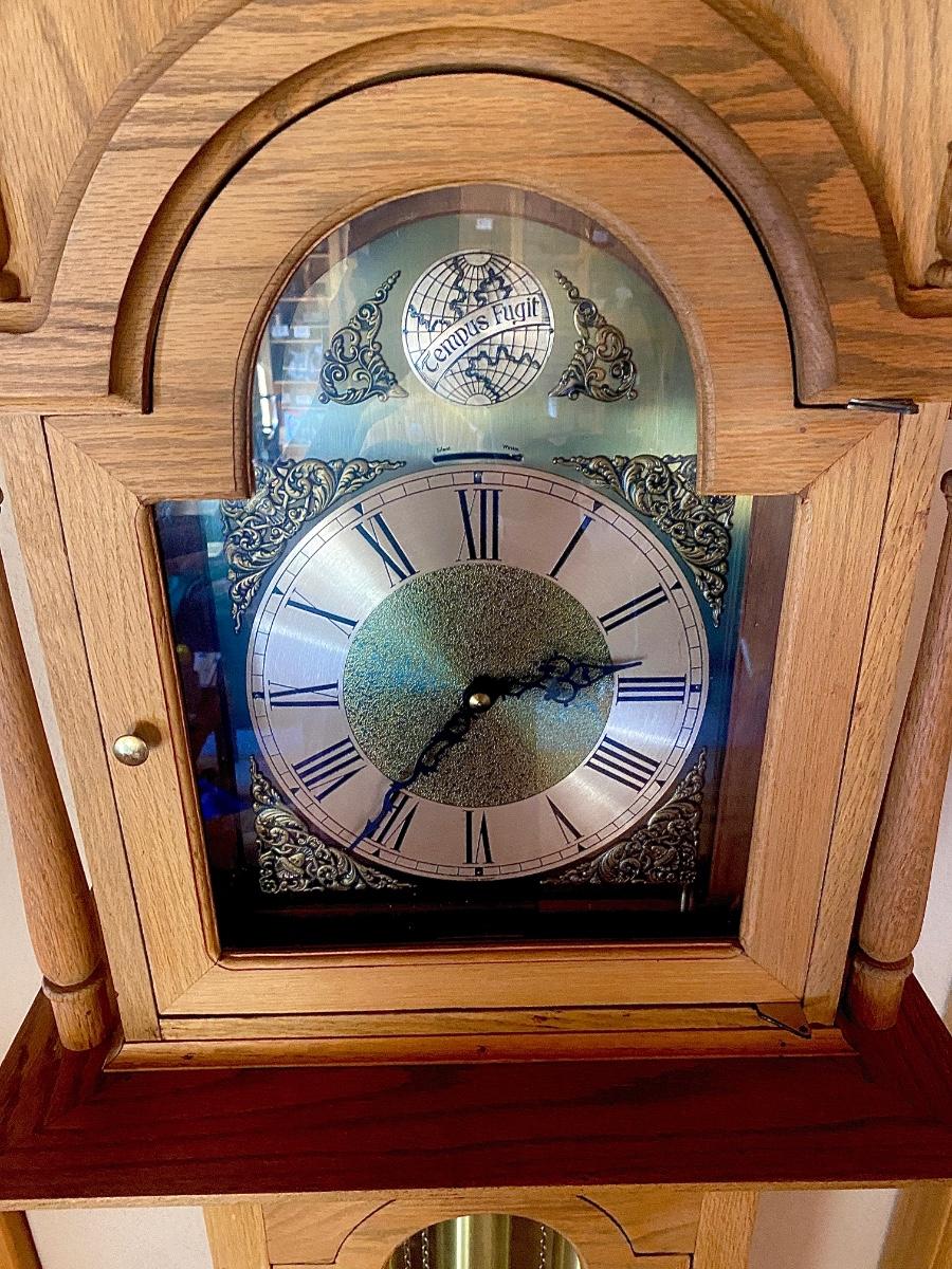 WORKING TRIPLE CHIME TEMPUS FUGIT GRANDFATHER CLOCK HAND CRAFTED IN BOULDER, CO.