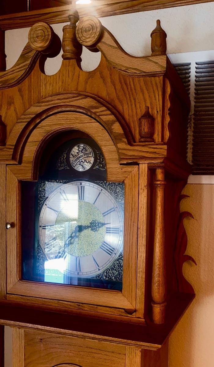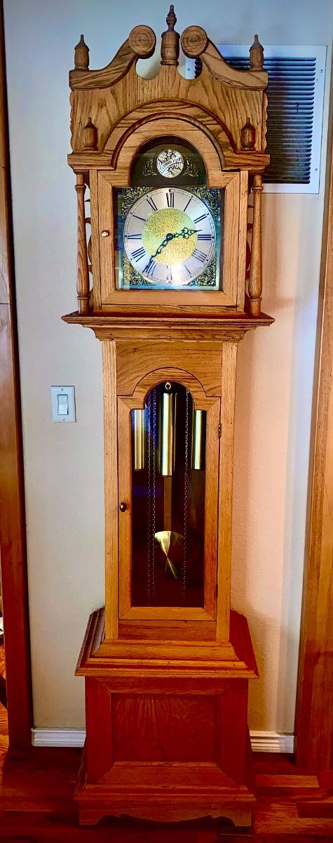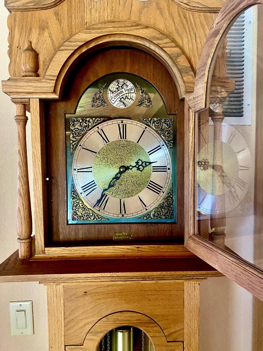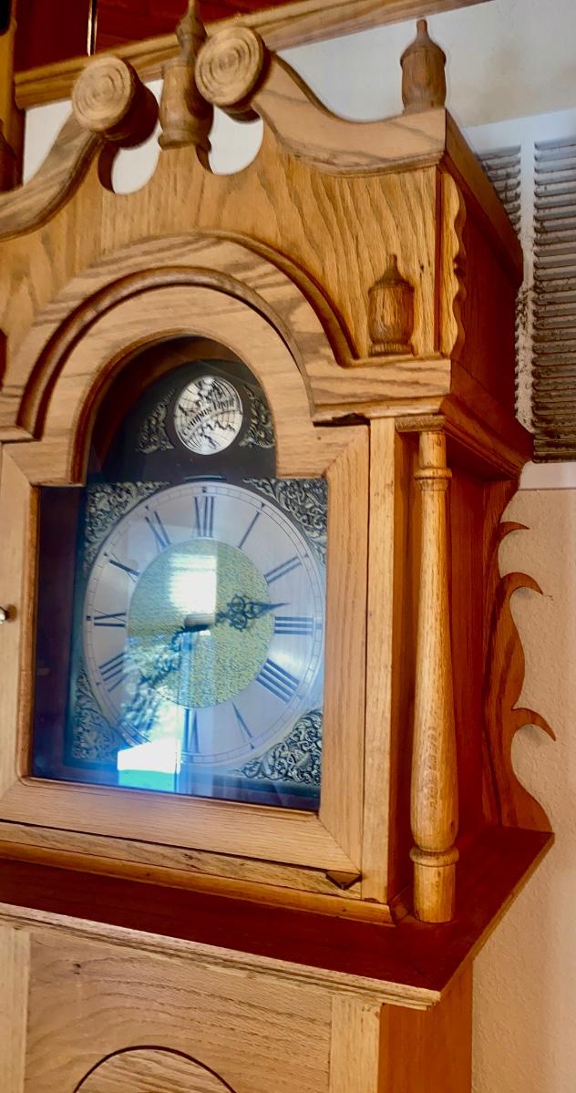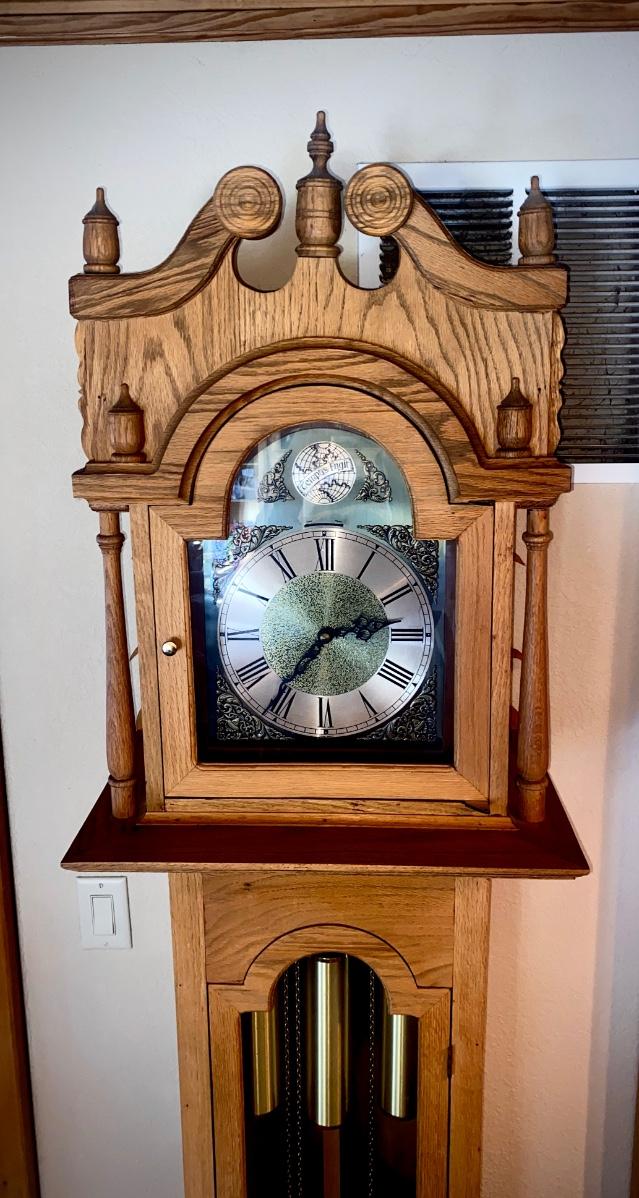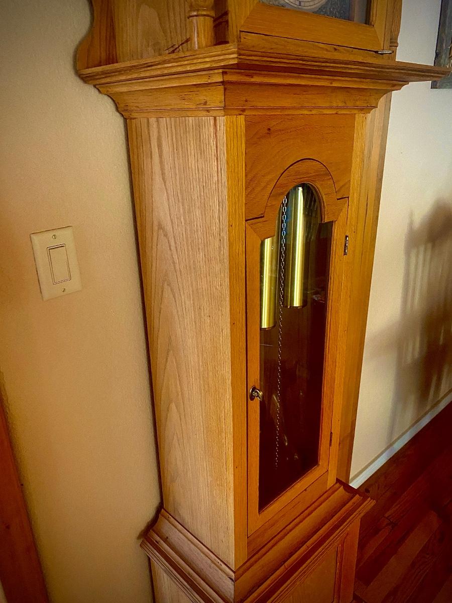WORKING TRIPLE CHIME TEMPUS FUGIT GRANDFATHER CLOCK HAND CRAFTED IN BOULDER, CO.