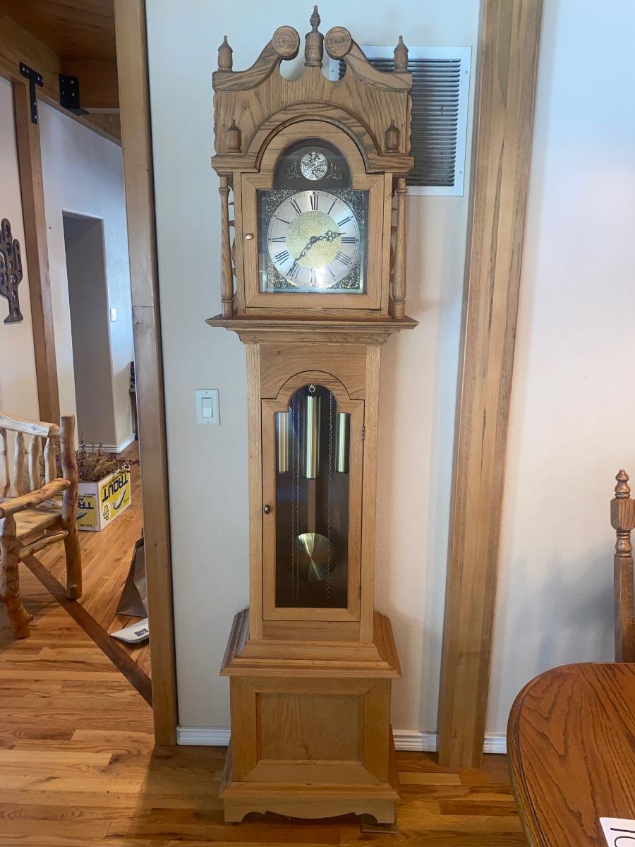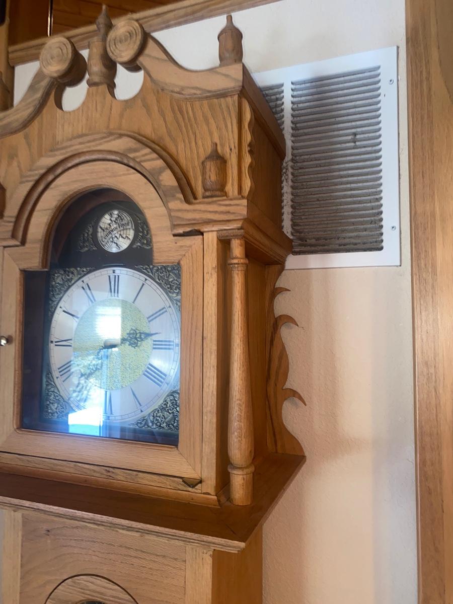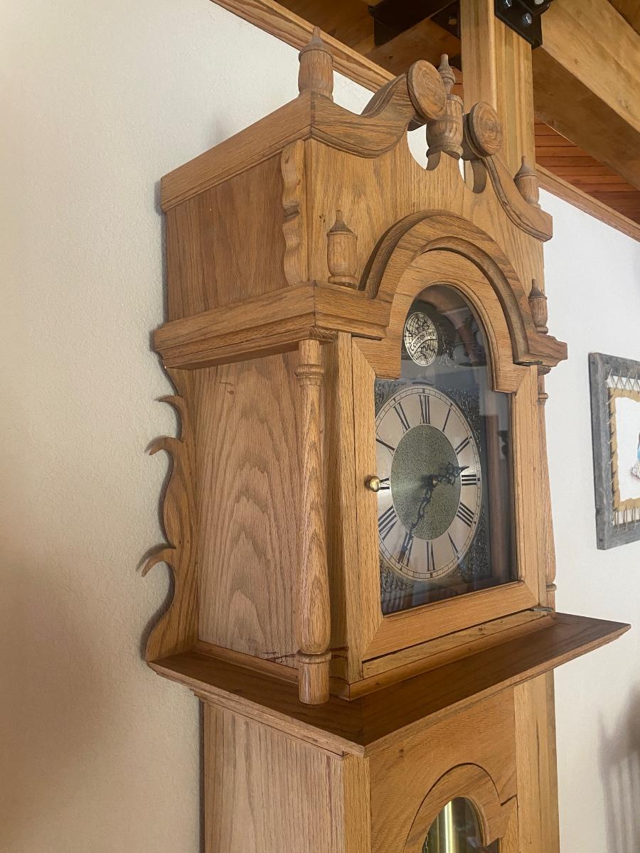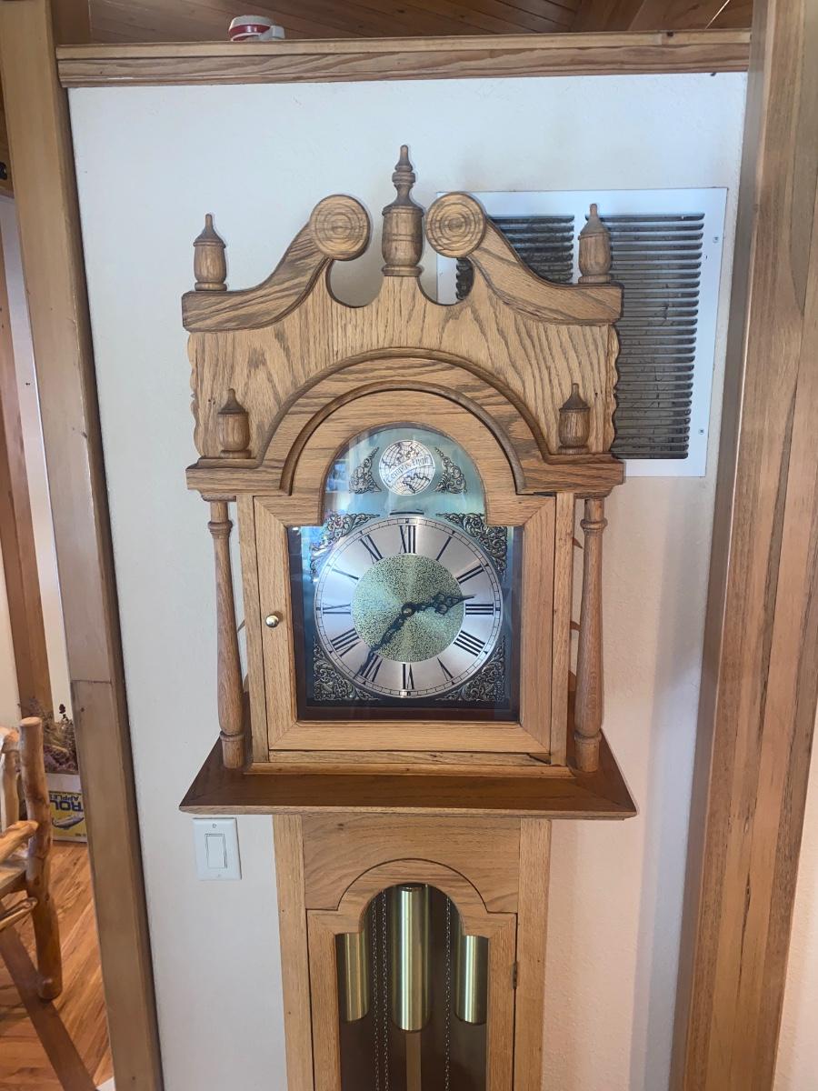 WORKING TRIPLE CHIME TEMPUS FUGIT GRANDFATHER CLOCK HAND CRAFTED IN BOULDER, CO.