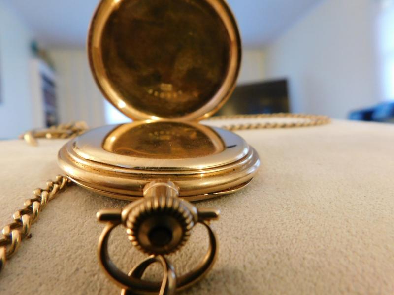 Working Vintage 14kt Solid Gold Case illinois Pocket Watch with Chain and Fob