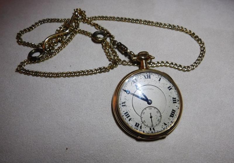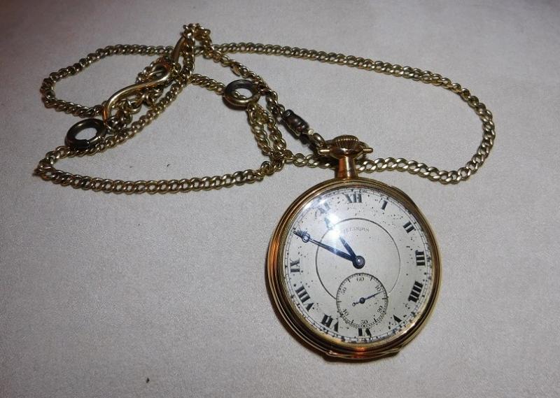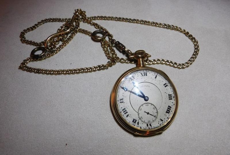Working Vintage 14kt Solid  Gold Case illinois Pocket Watch with Chain and Fob