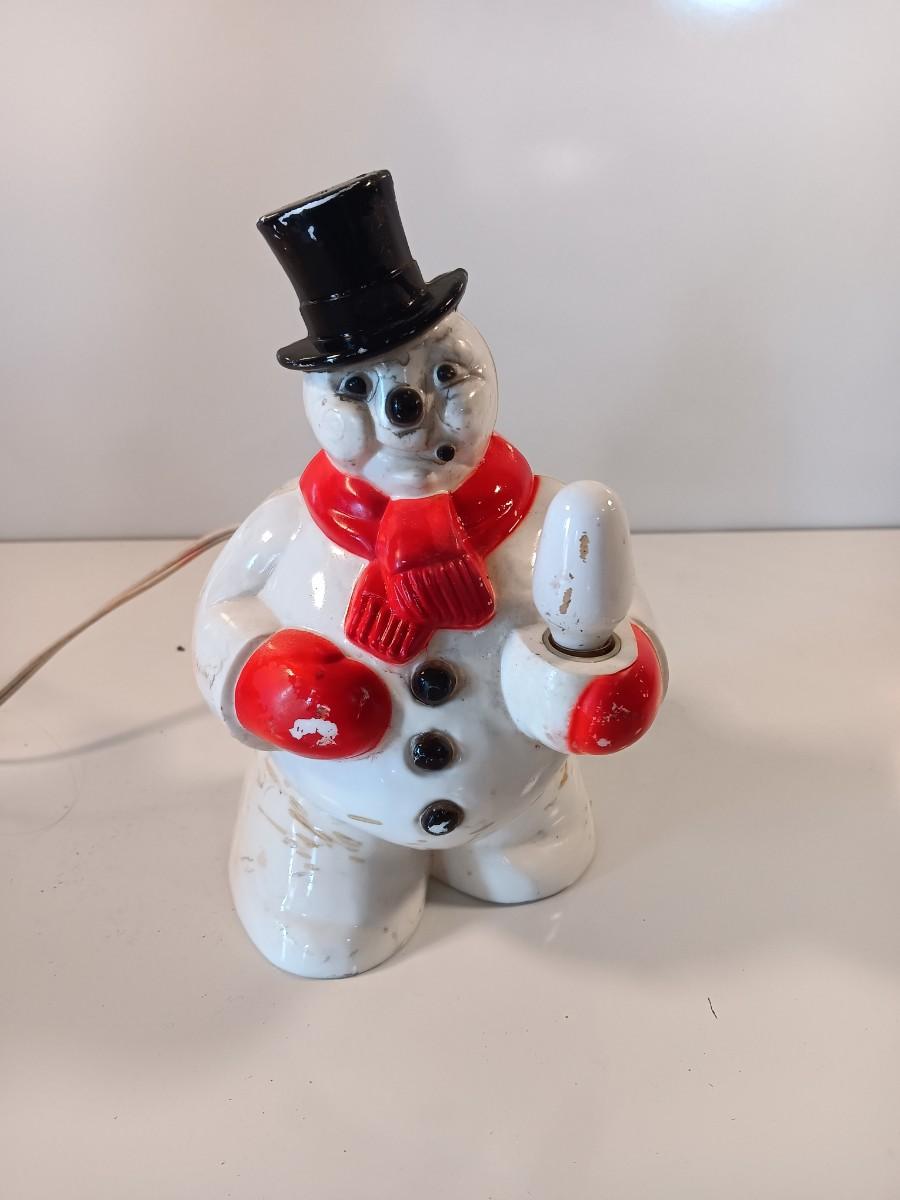 Working Vintage Hard Plastic Christmas Snowman Light, 1950's - has some tape residue that should be easy to clean off.