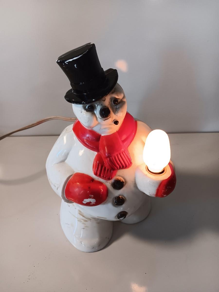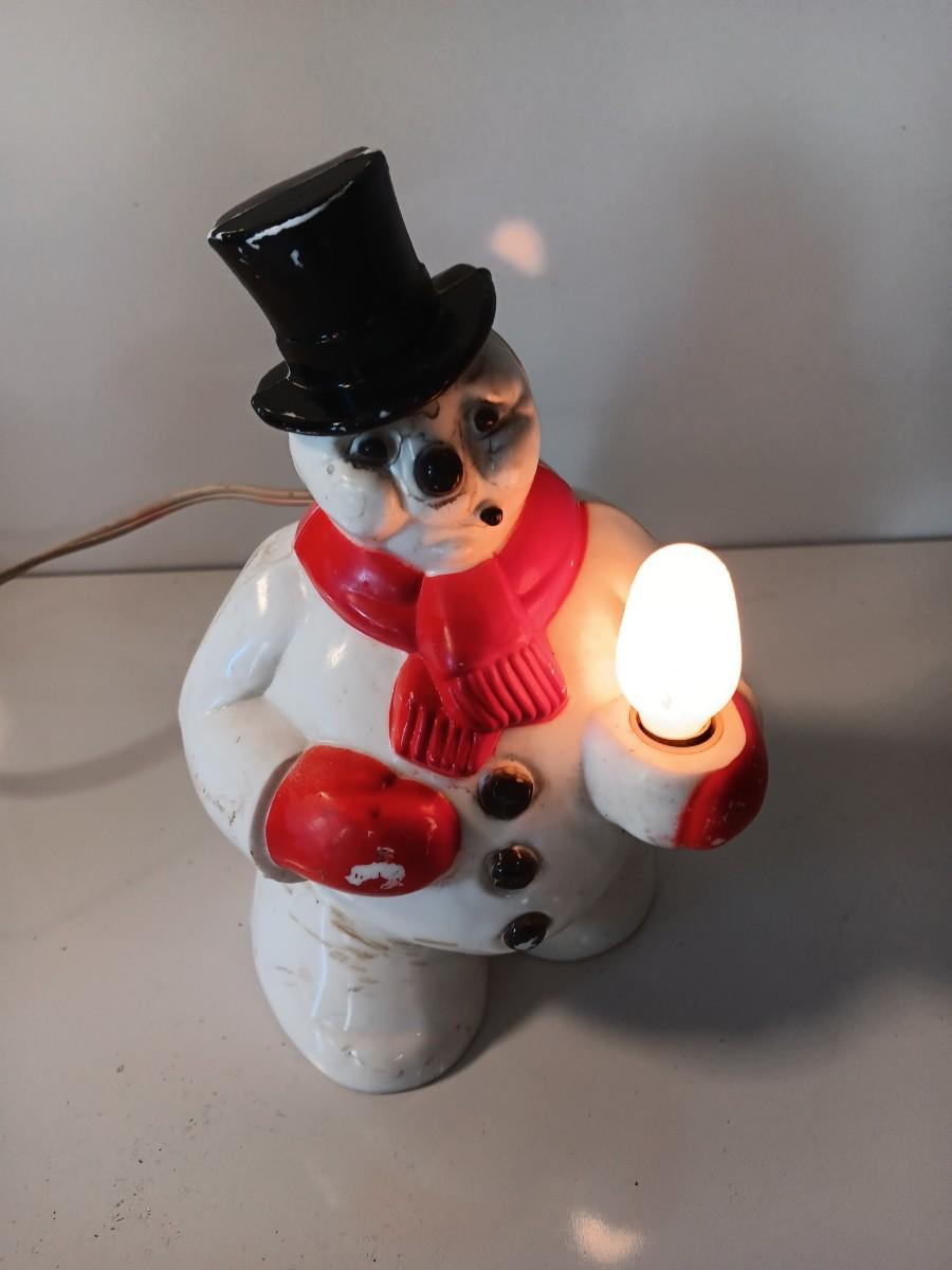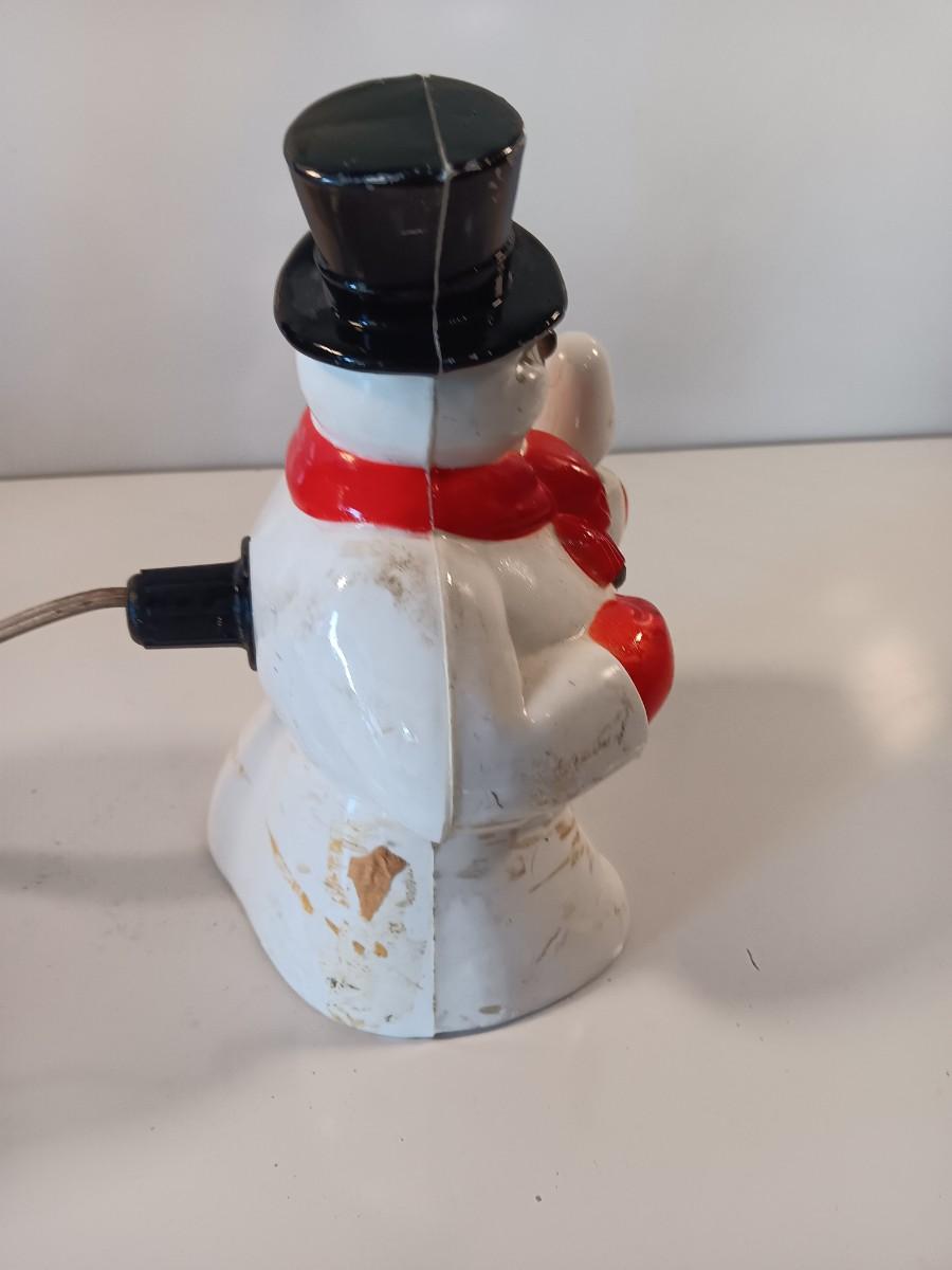 Working Vintage Hard Plastic Christmas Snowman Light, 1950's