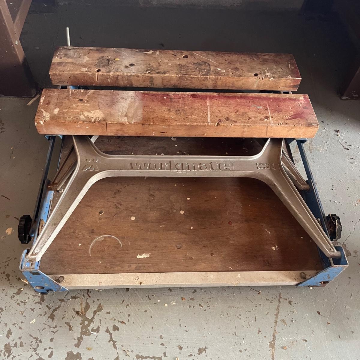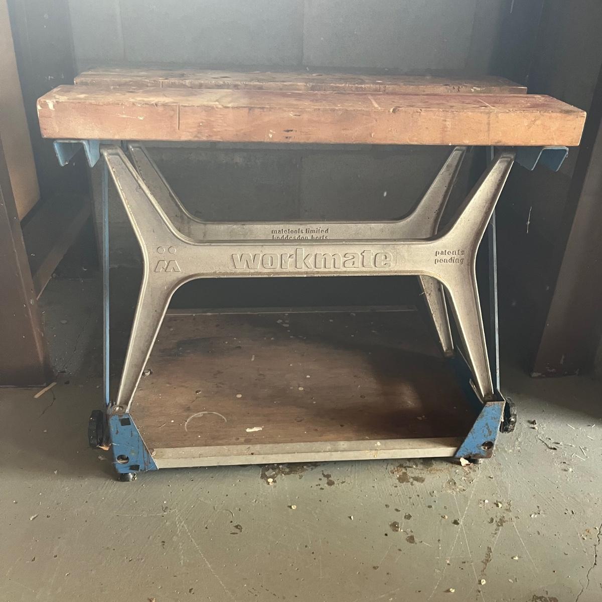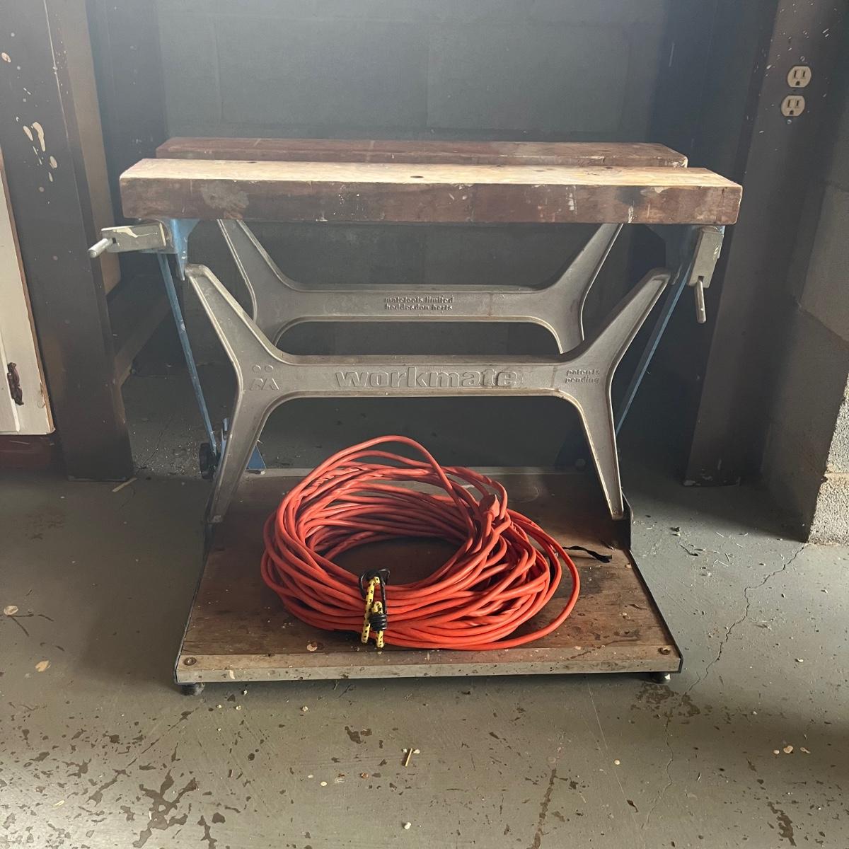 Lot includes a outdoor extension cord and Mototools Workmate folding workbench. Bench measures 19.5” x 26.75” x 23” when open.