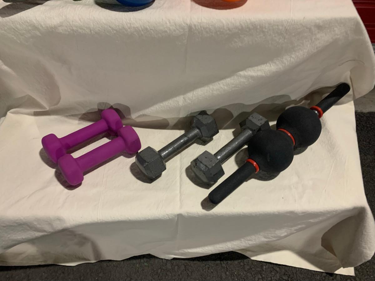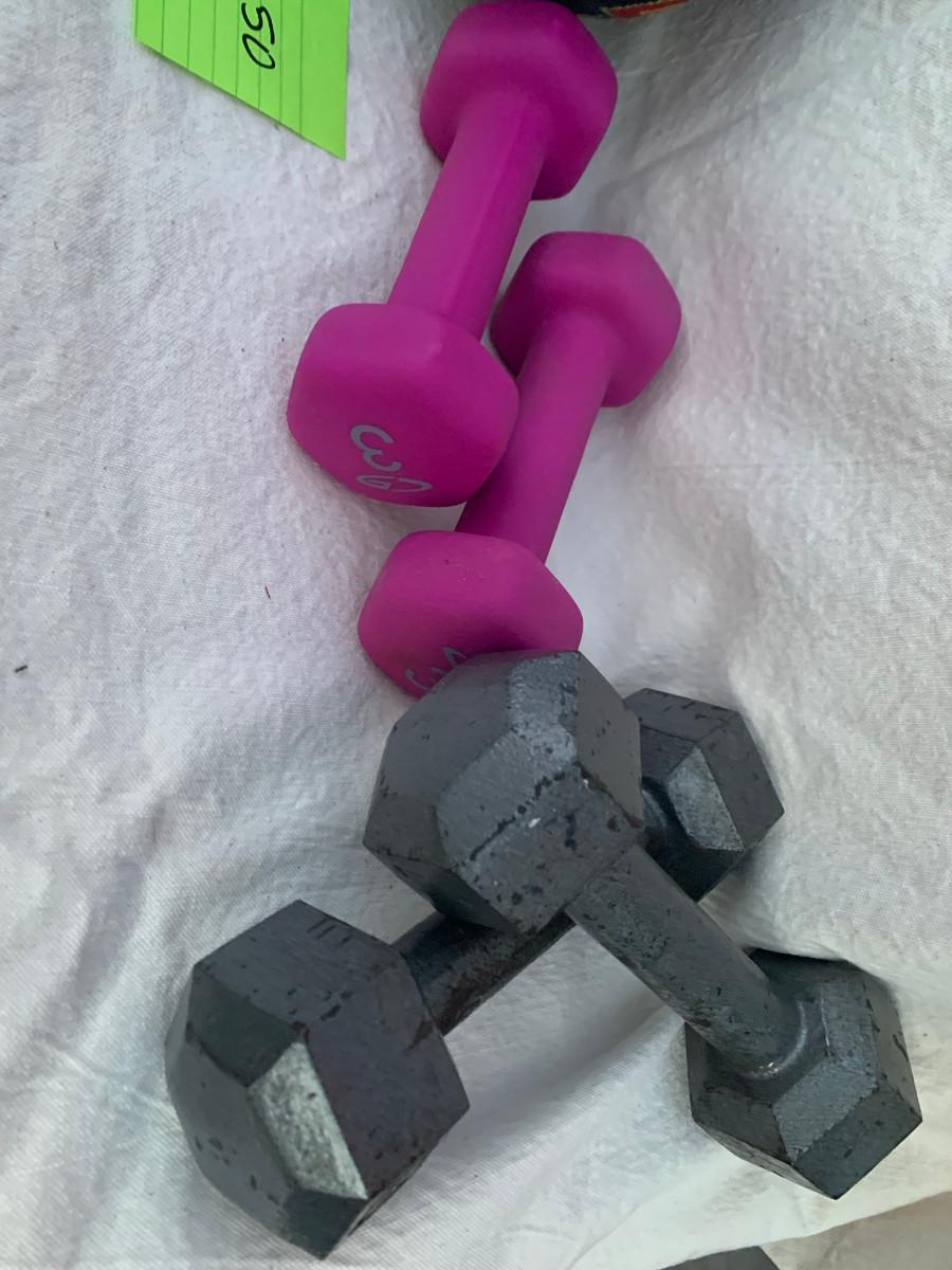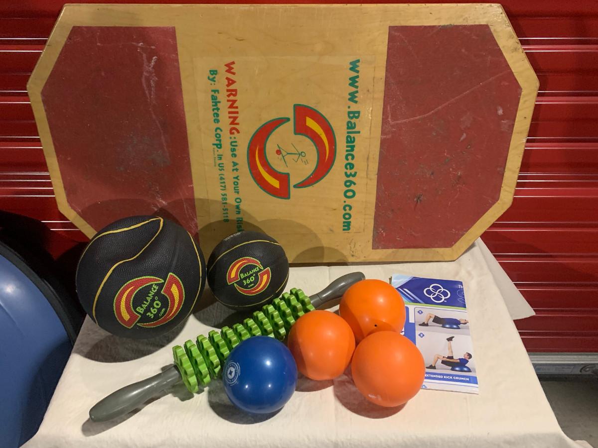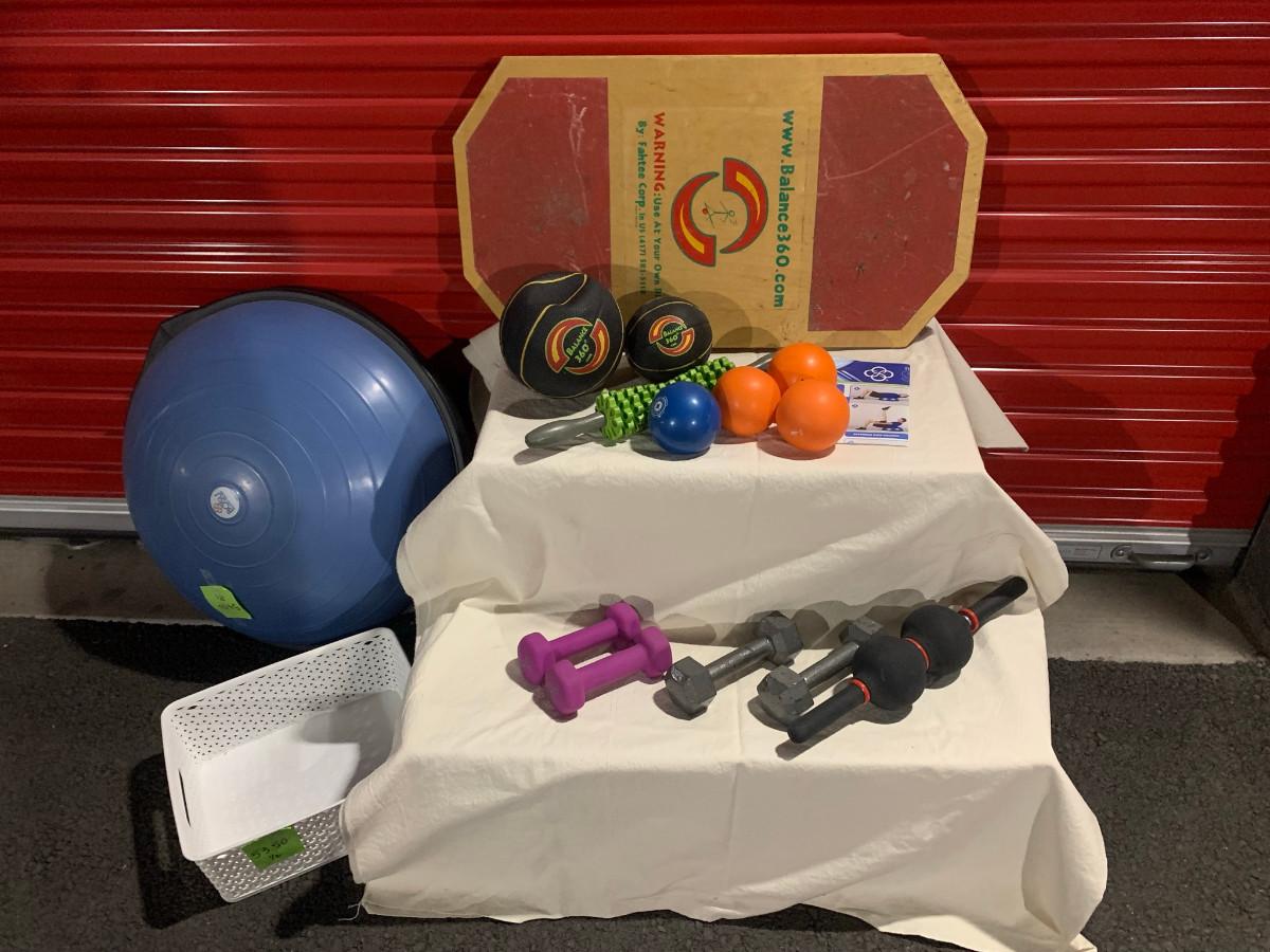 Weights, pilates balls etc“🦆 Balance 360 degrees ball x 2, 3lb weights, and 5lb weights, Bosu Balance Trainer 1/2 ball