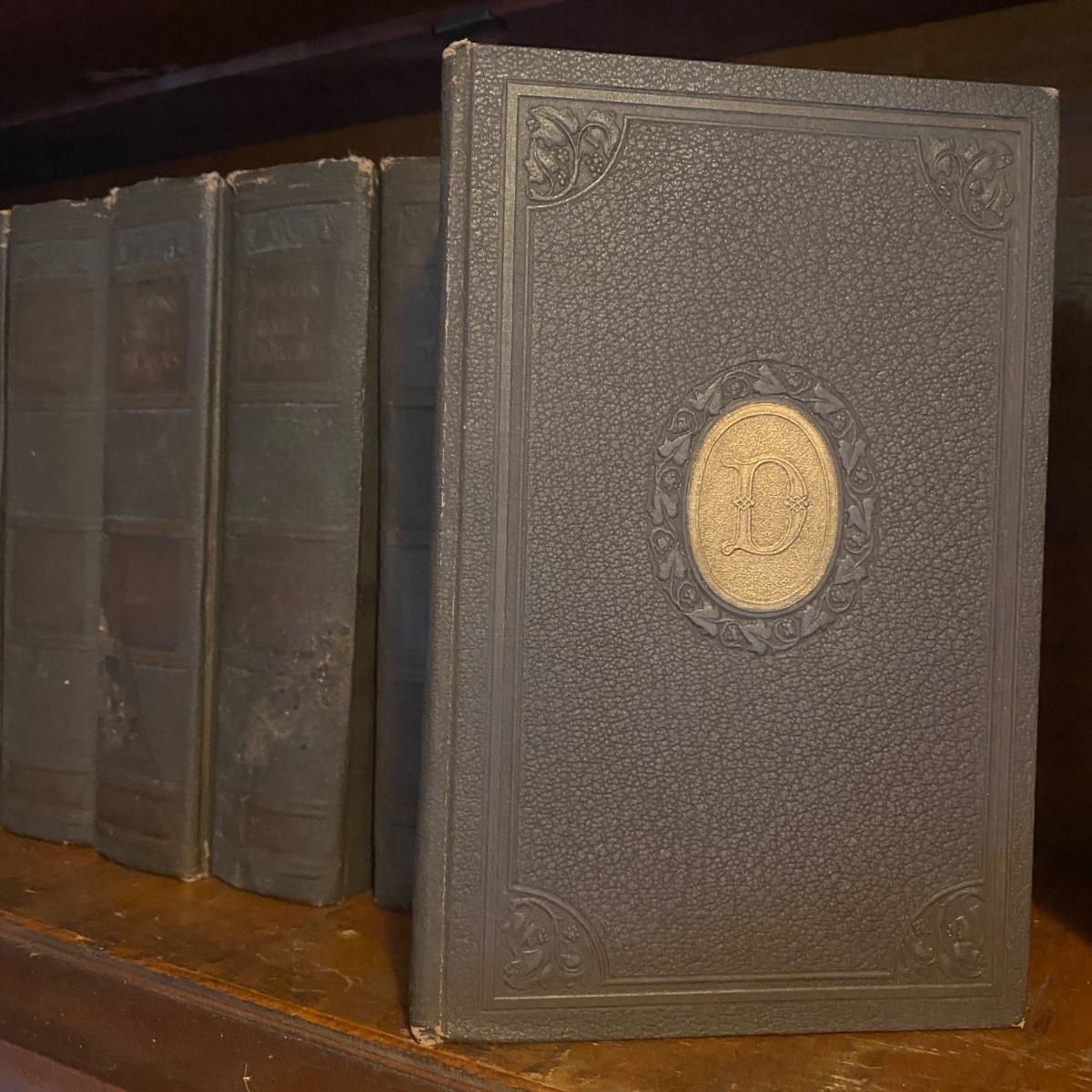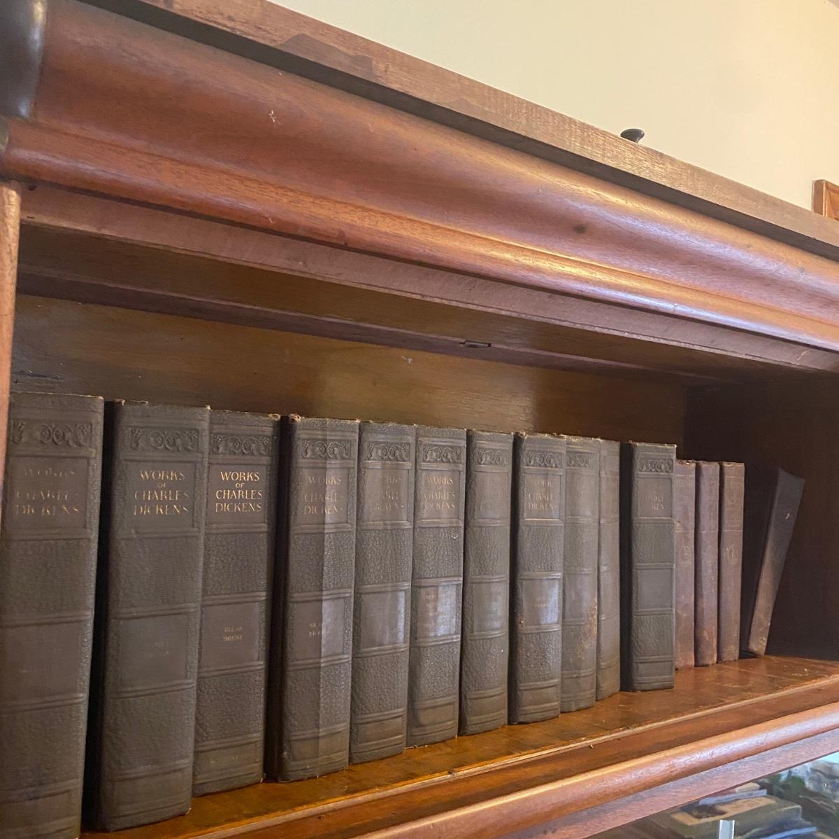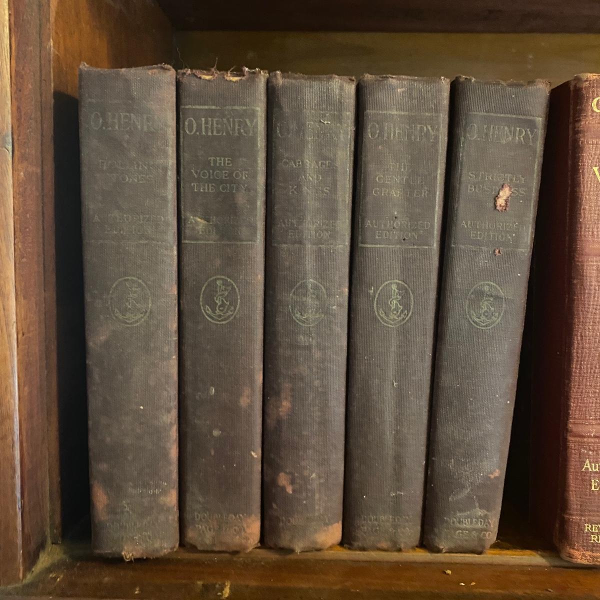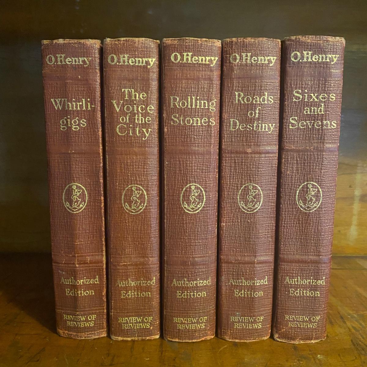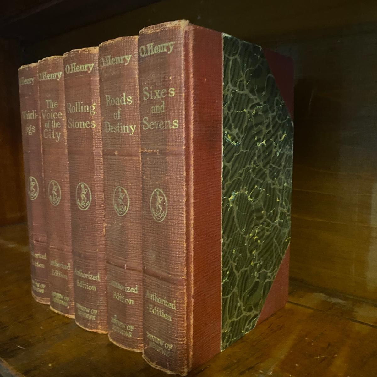 Lot includes 11 volumes of Works by Charles Dickens published in 1924. Dark worn covers show age. Also includes five volume set from 1919 and a worn five volume set from 1925 both by O.Henry. The worn cover set includes Strictly Business, The Gentle Grafter, Cabbages and Kings, Rolling Stones and The Voice of The City. Outside covers in worn set are in poor shape. Paper is fine. All volumes show signs of age. Shipping available