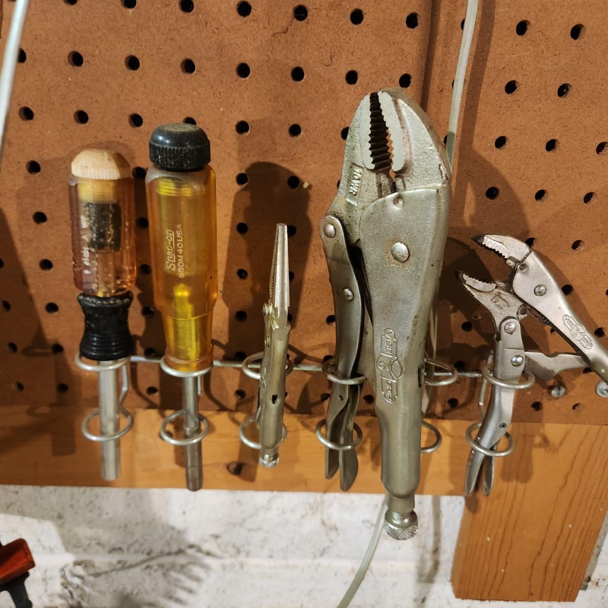 Vise Grip tools, 3m Wall hangers, Includes Hooks if you want them.