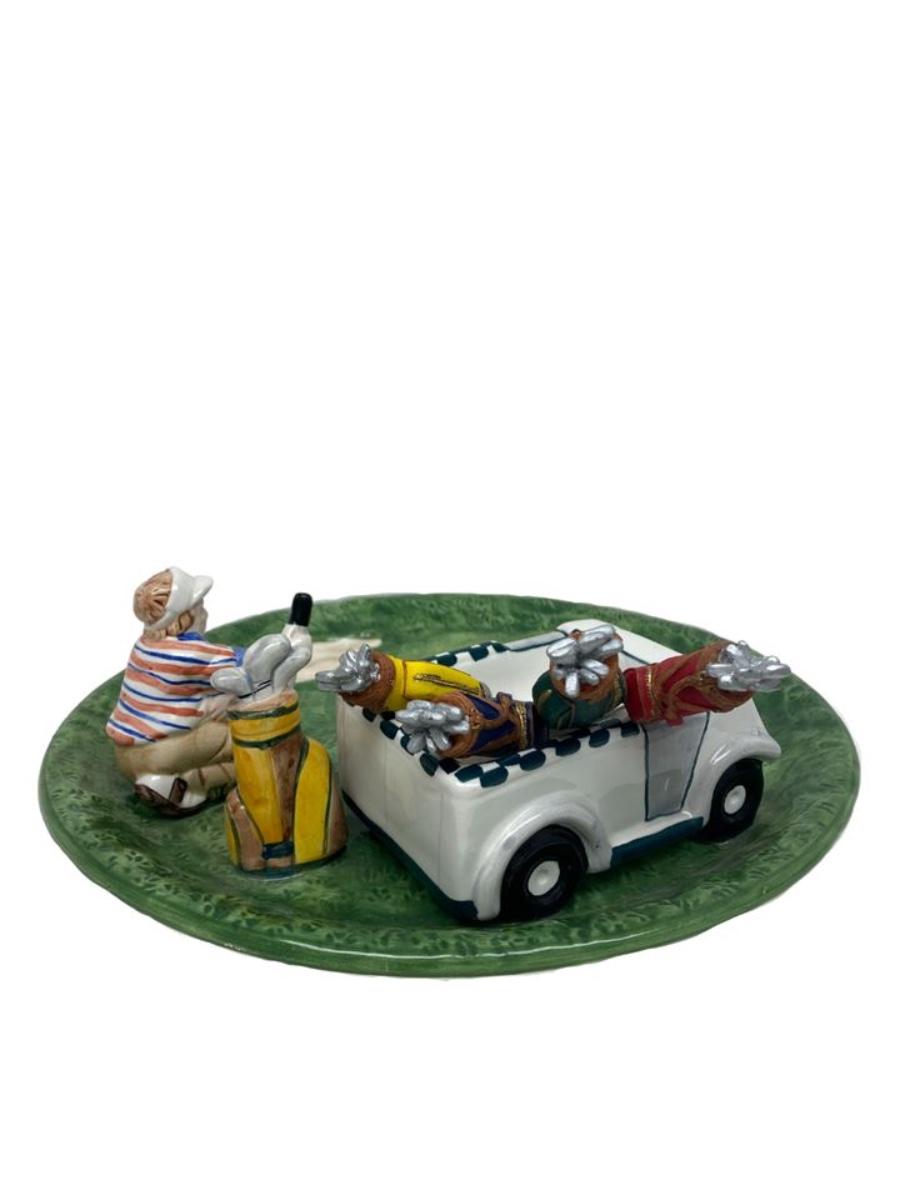 Measures approx. 12" diameter. Includes 4 cheese knives. Note: Has small paint chip (pictured).