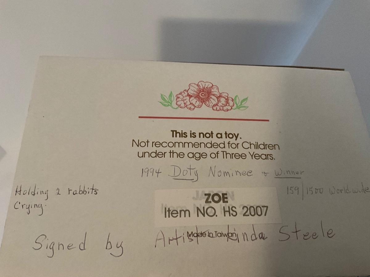 World Gallery 1994 Doty Winner Zoe Doll Artist Linda Steele