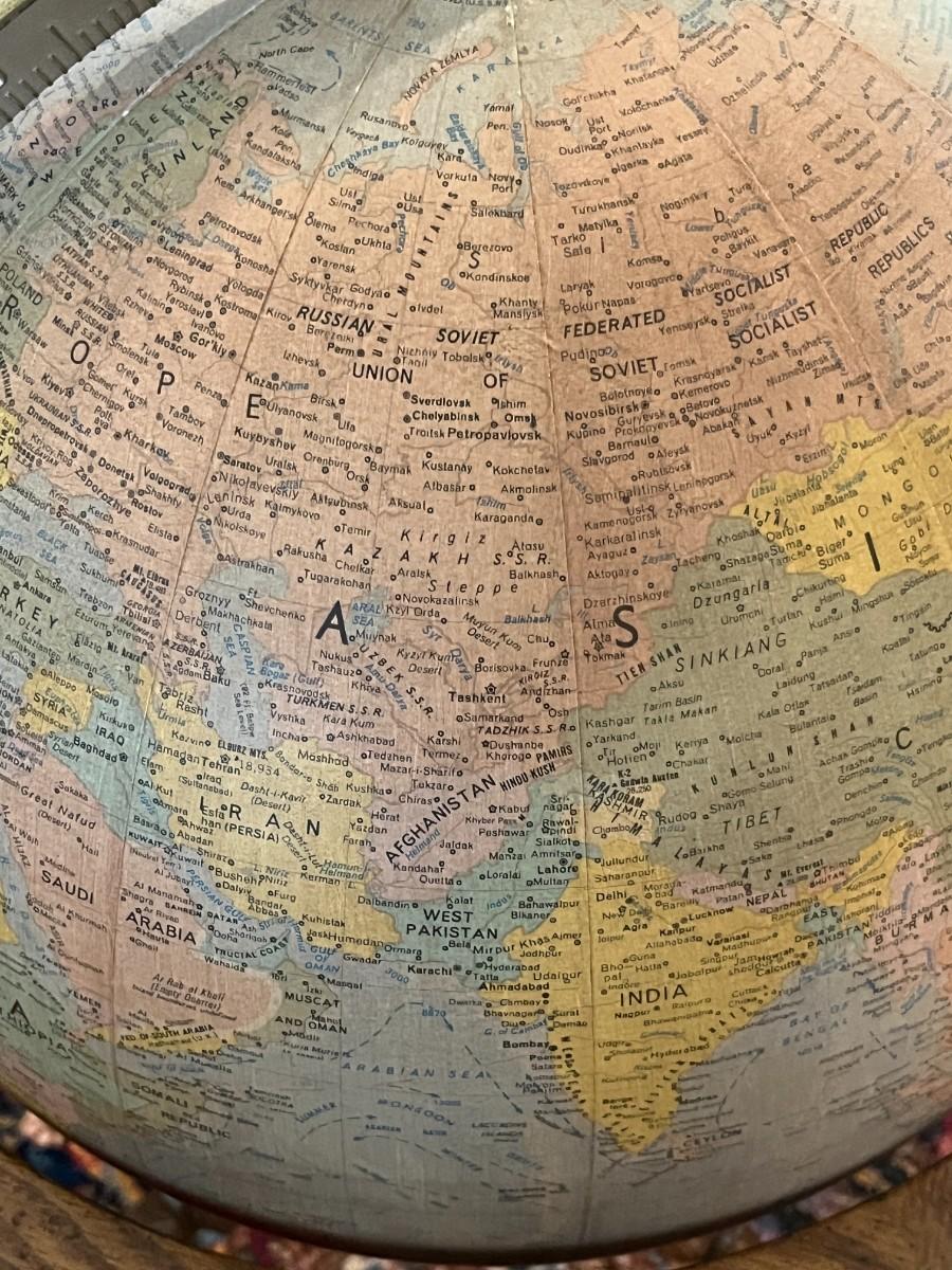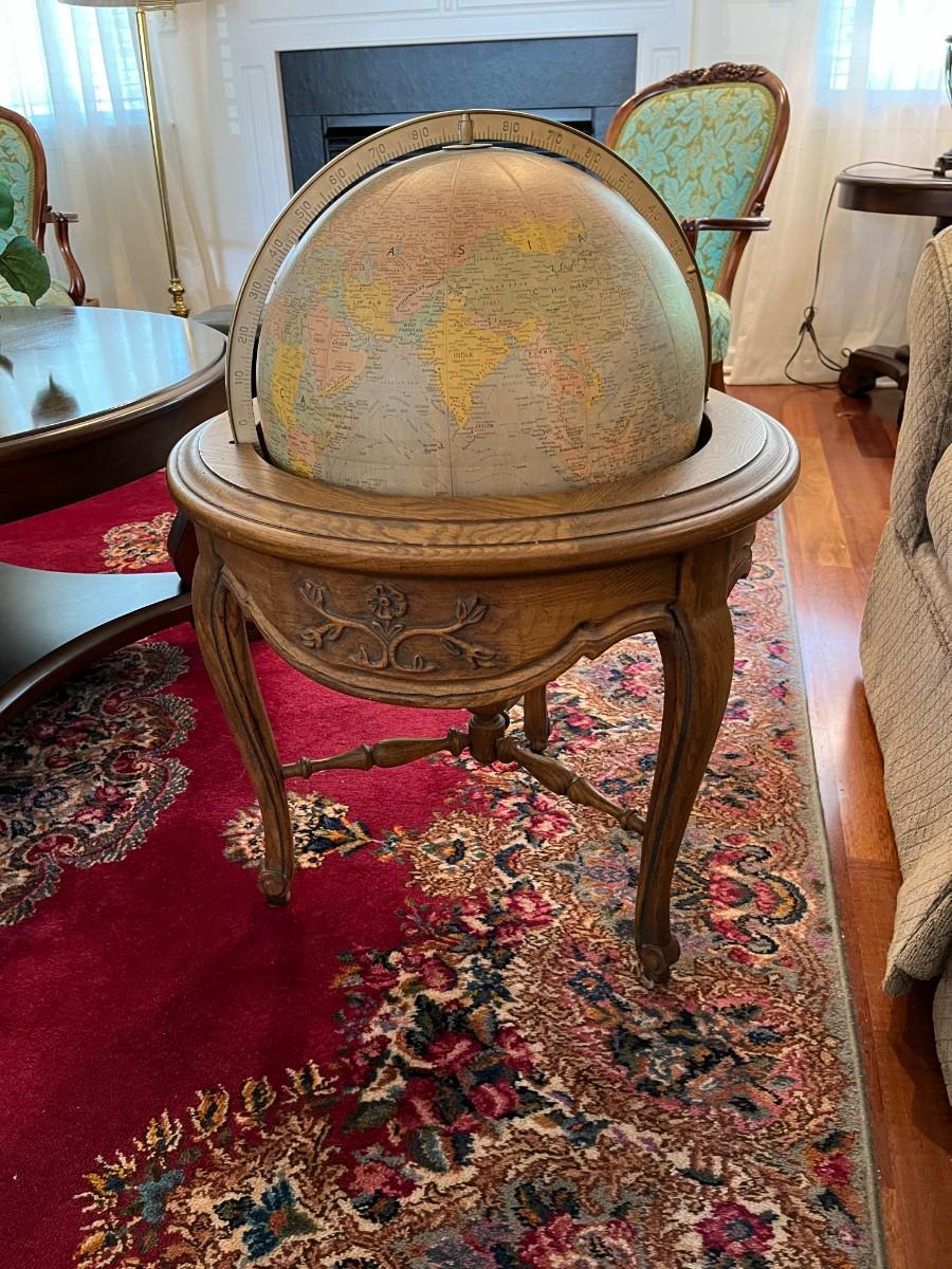 World Globe in Wooden Floor Stand Approximately 32" Tall