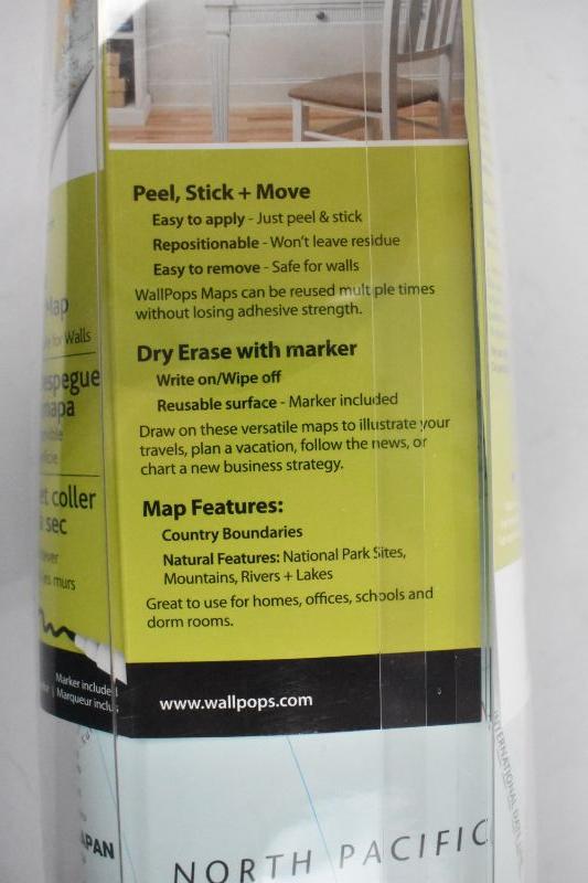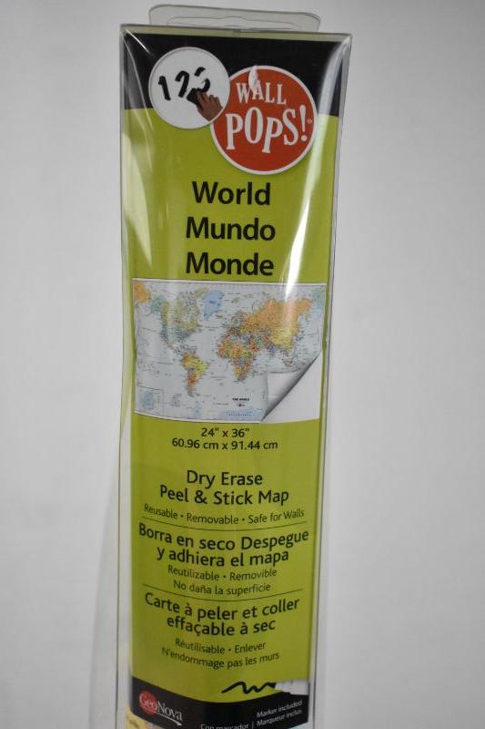 World Map, Dry Erase Peel & Stick Reusable "Wall Pops!" - New, Damaged Box