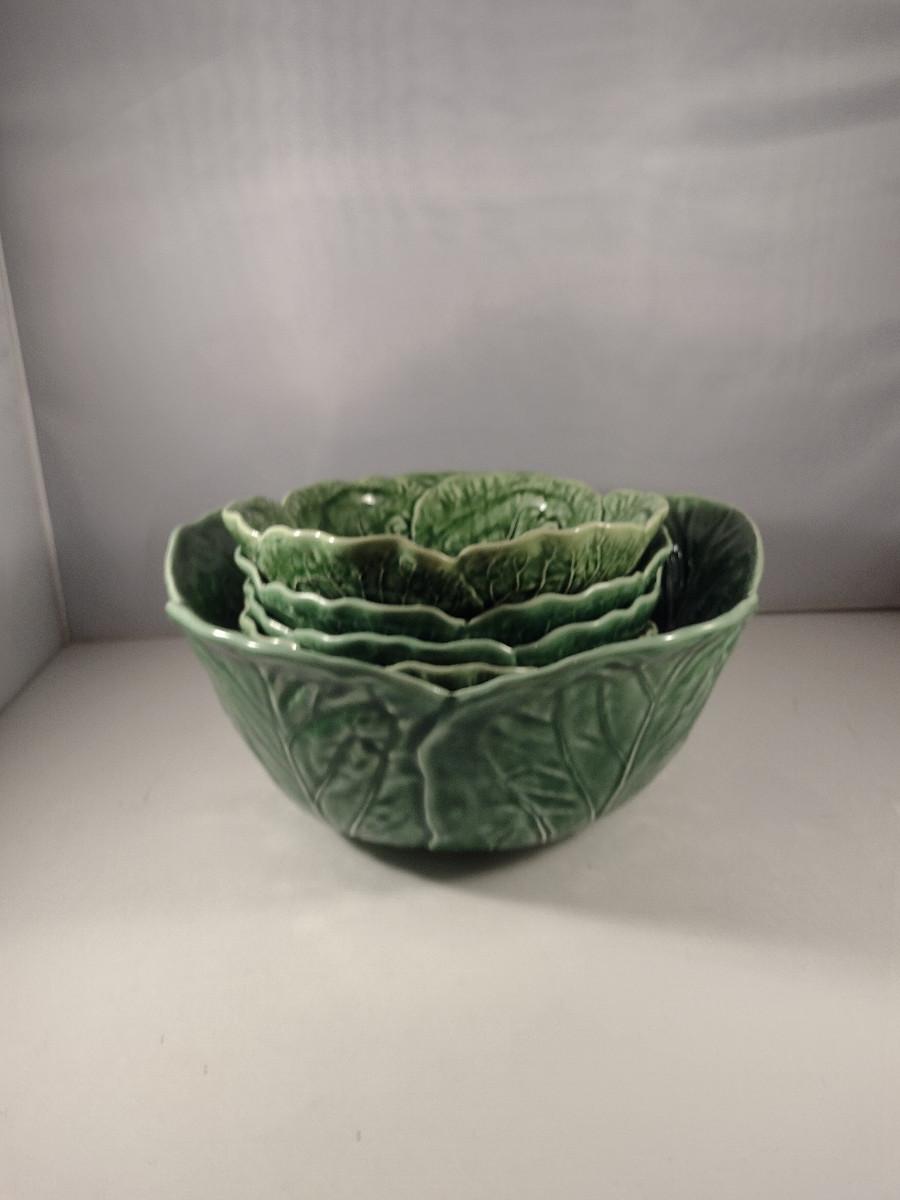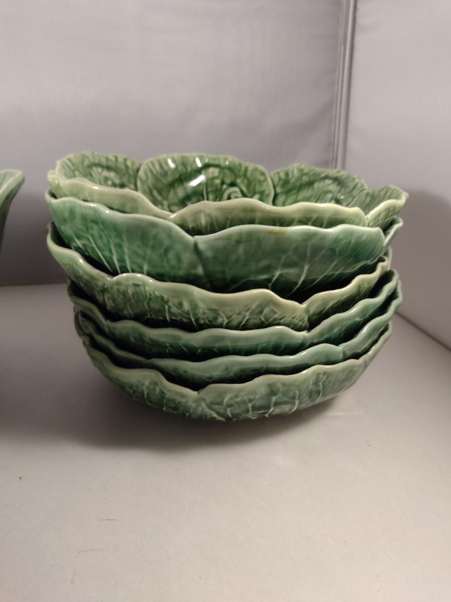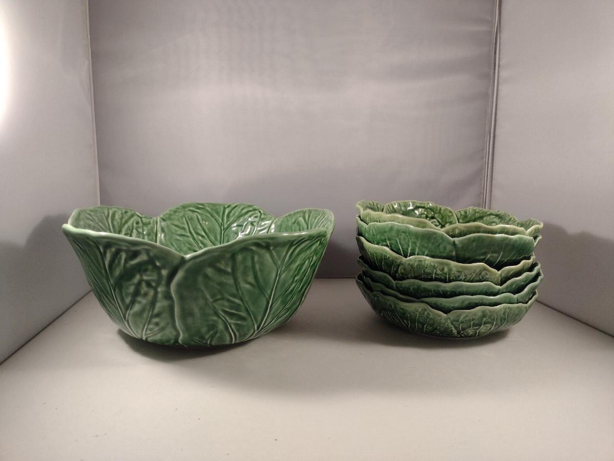World Market Cabbage Leaf Design 7 Piece Ceramic Salad Set