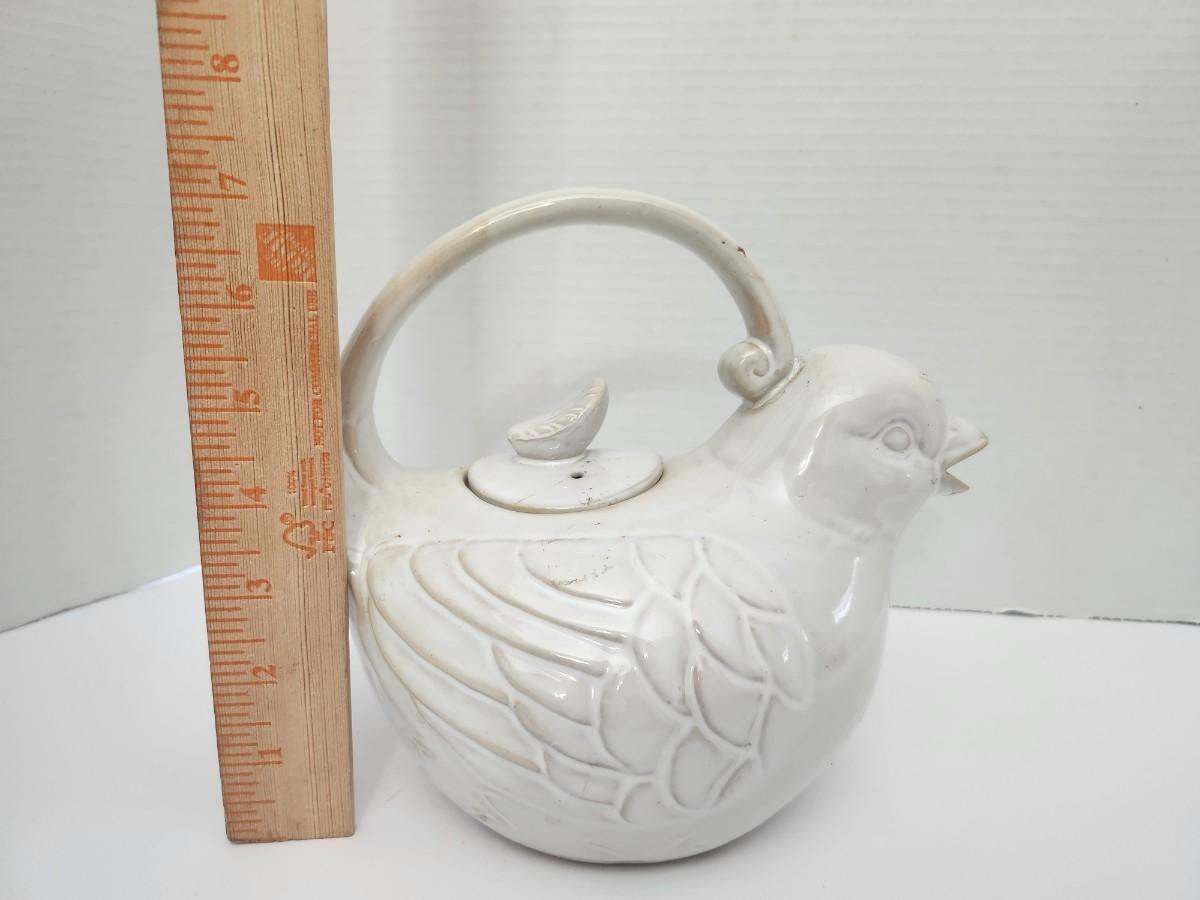 World Market White Ceramic Bird Teapot Figural Lidded Tea Pot Made in China